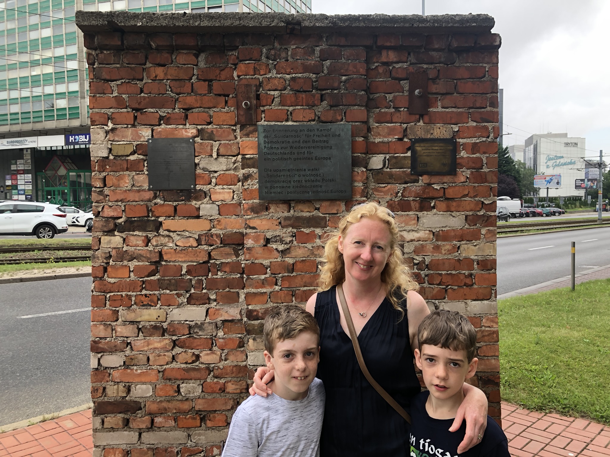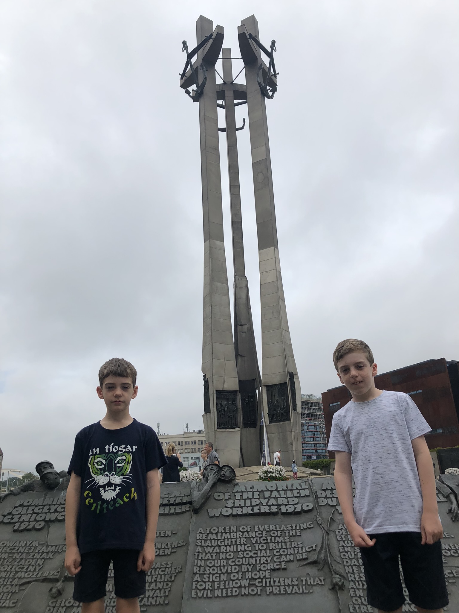 Next day we headed to the ‘National Centre for Solidarity’ down by the shipyards. The building was designed to look like a ship, built with rusted metal sheets. It reminded us of the Titanic museum in Belfast. In the garden was a section of the Berlin Wall to show solidarity with the oppressed of Gdansk and a memorial for the fallen shipyard workers of 1970.