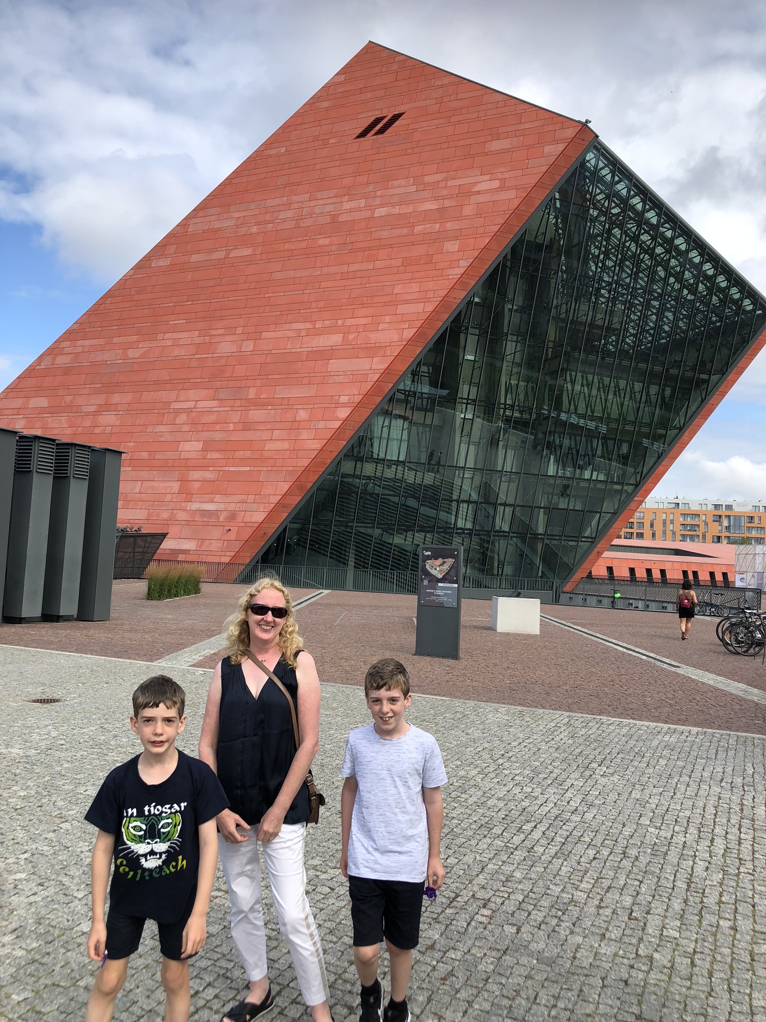 The last stop of the day was the WW2 museum. The red brick building was visible from a distance. The museum was good but dark an disturbing too and not really kid friendly. We saw the train trucks that carried the Jews to concentration camps, a tank, a huge machine gun, a Polish street in the Warsaw ghetto and the atomic bomb. And yes Shea had a bad dream that night 😳