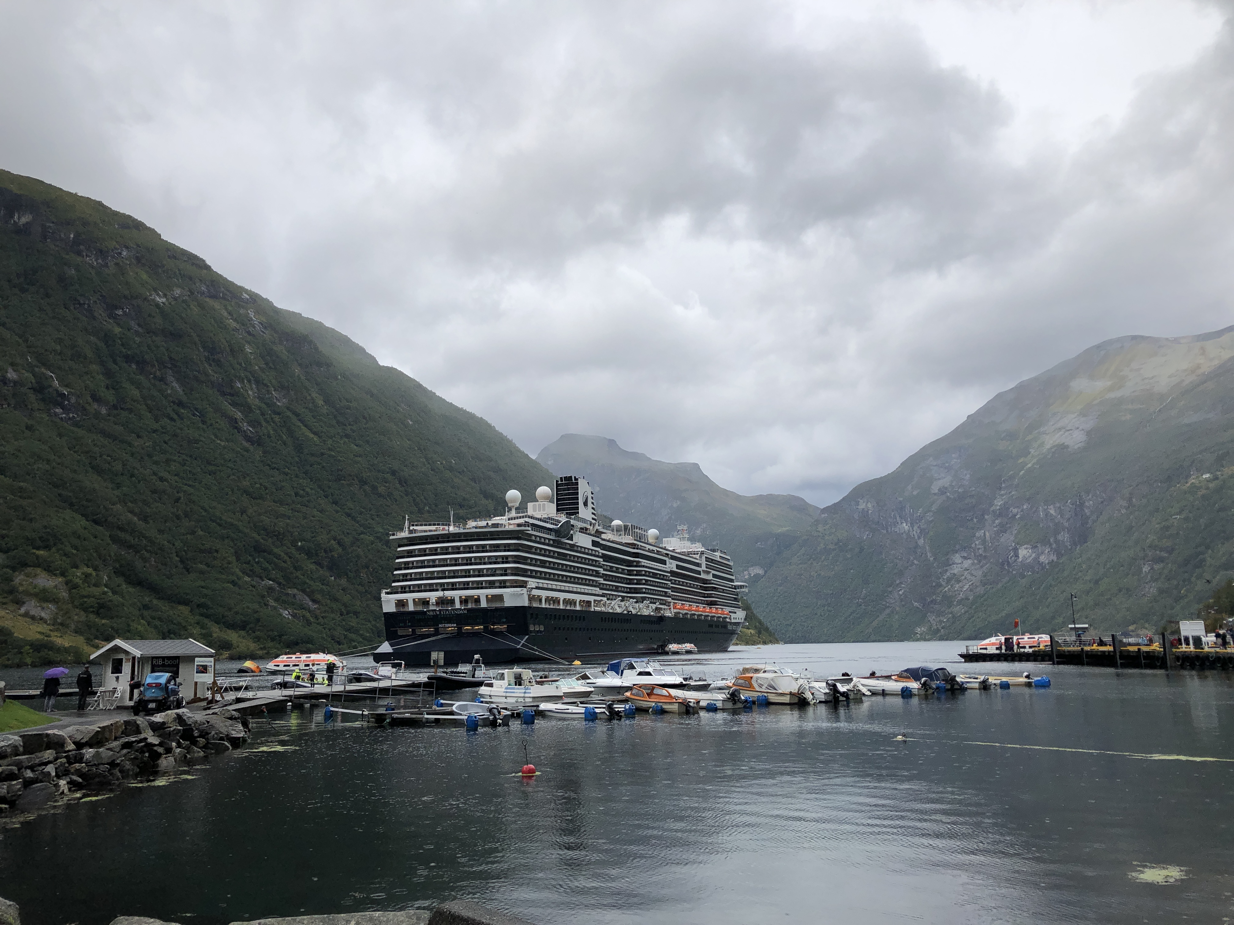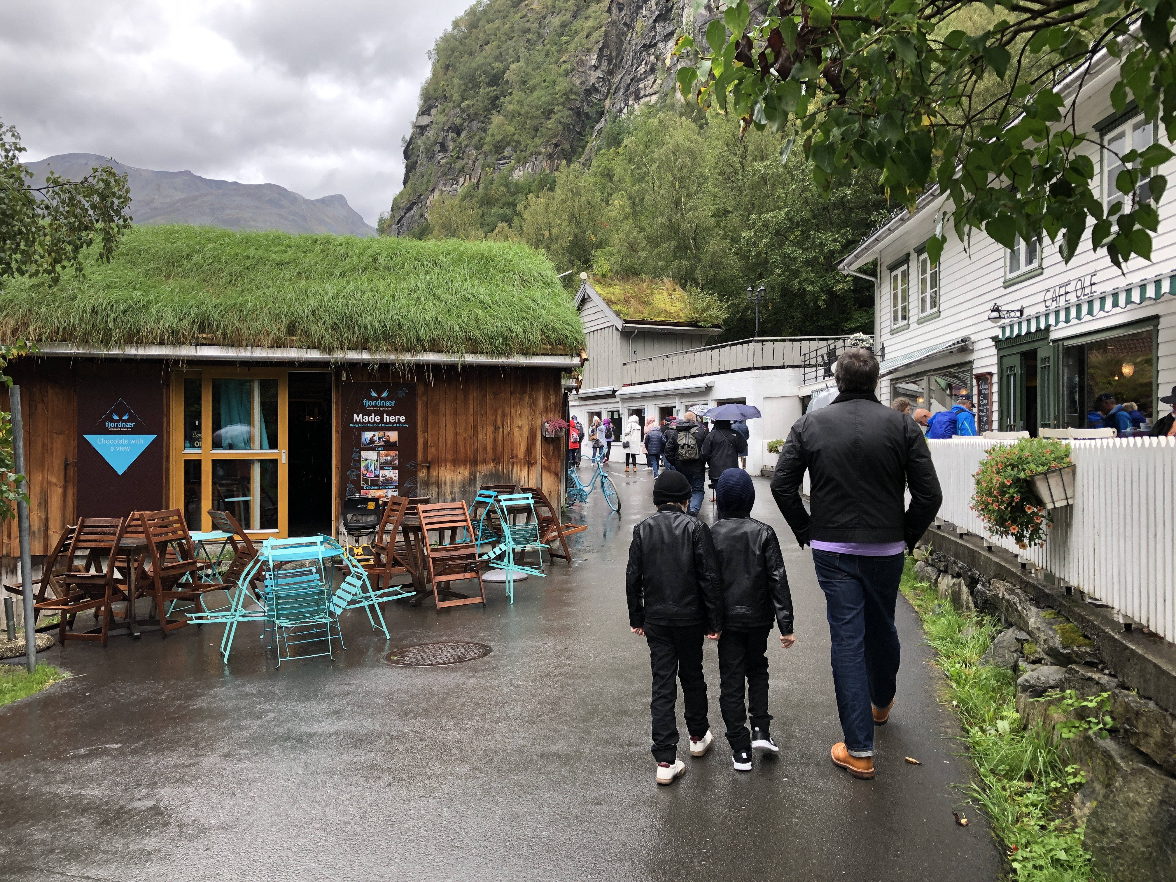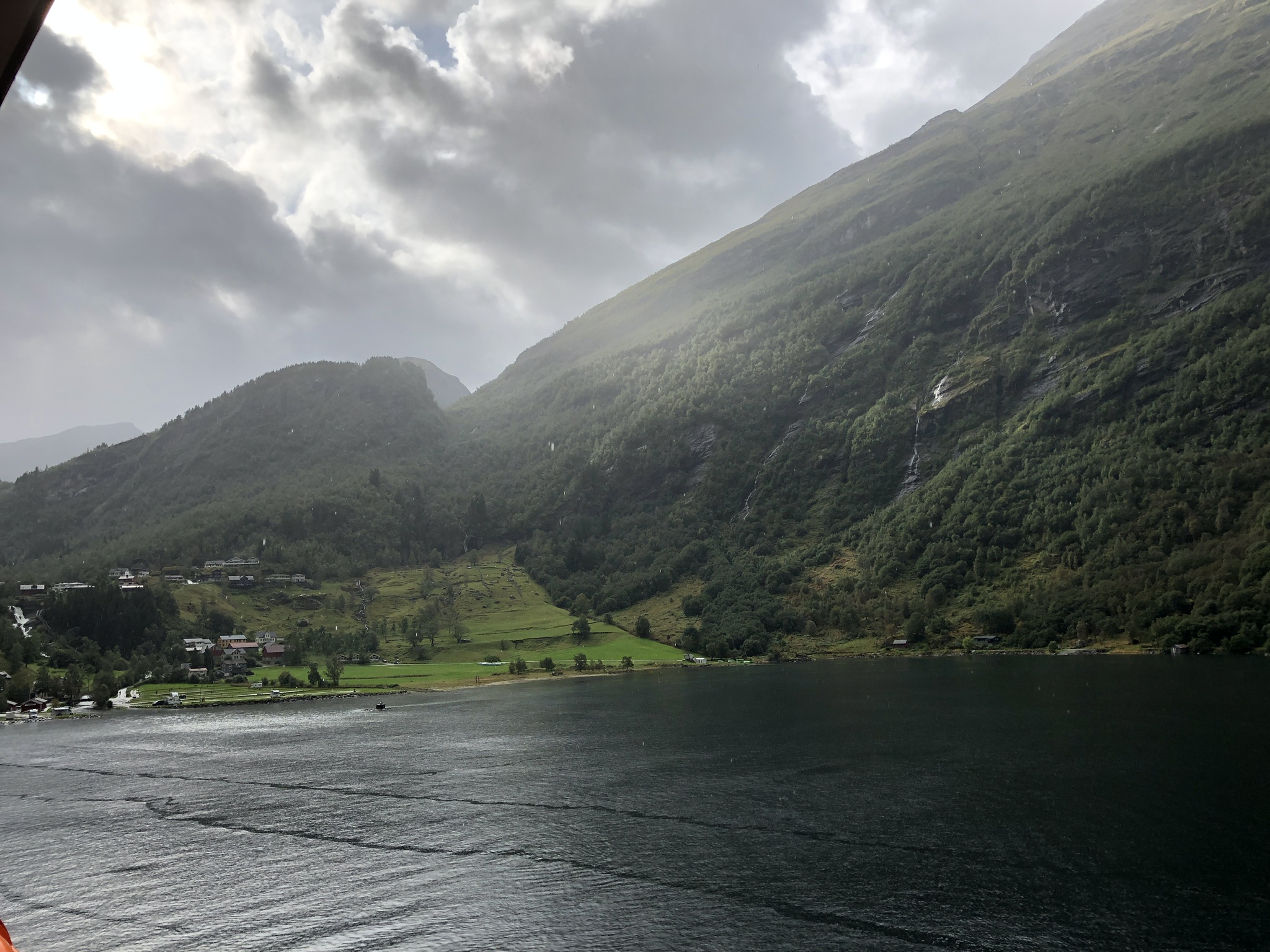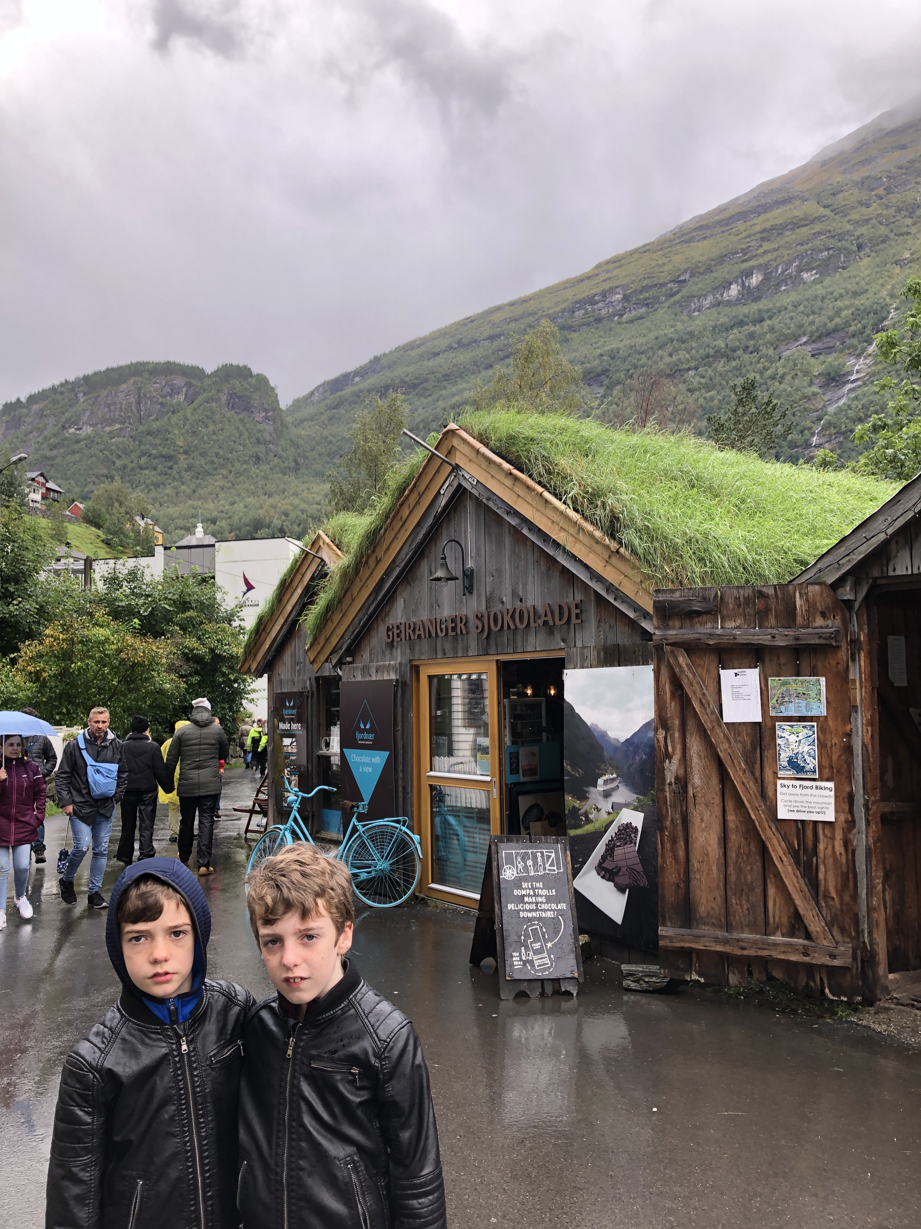 Next day we stopped in Geirangerfjord. We had to take a tender to the shore. It was a tiny town, also popular with cruise ships. With put on our rain gear and headed off the boat for a walk. The turf roofs on some of the shops and houses was interesting. The water was crystal clear. Interesting when it’s so deep at 13,000 meters compared to the North Sea which can be as shallow as 35meters!