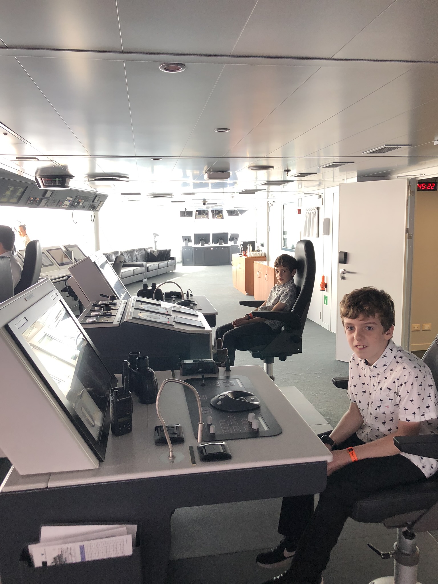 Our last day at sea we attended the Mariners Lunch where we were welcomed by the Captain and offered some champagne and a gift of a Delft tile. Then we visited the Bridge where we had a special private tour with Captain Noel O’Driscoll. It was another cruise highlight to see operations of the ship. The boys got to blow the fog horn and we took some pictures too. The Captain spent about an hour with us chatting and swapping travel stories. We saw the maps showing the route and learnt a lot about how the ship operated. Up Cork!