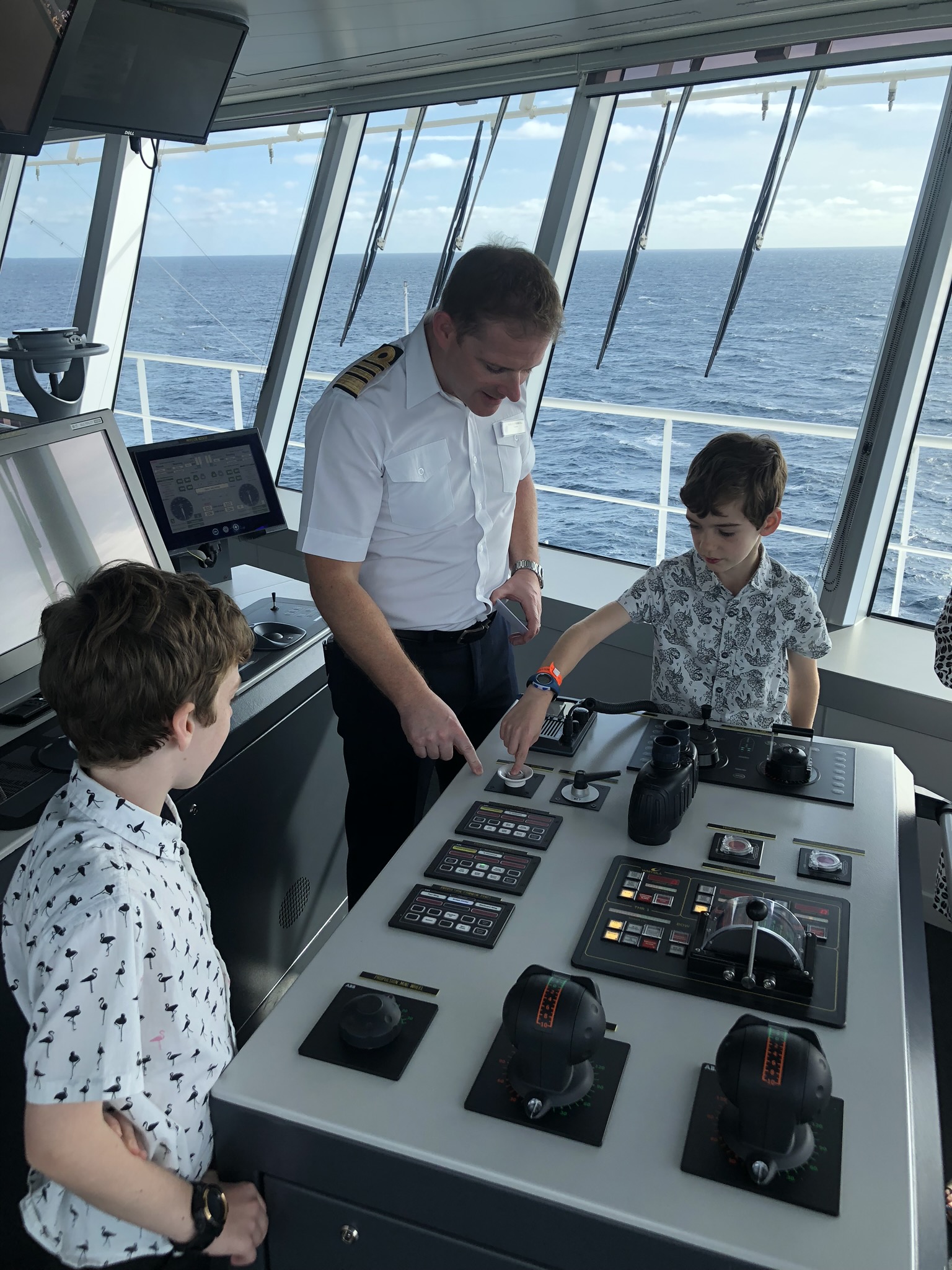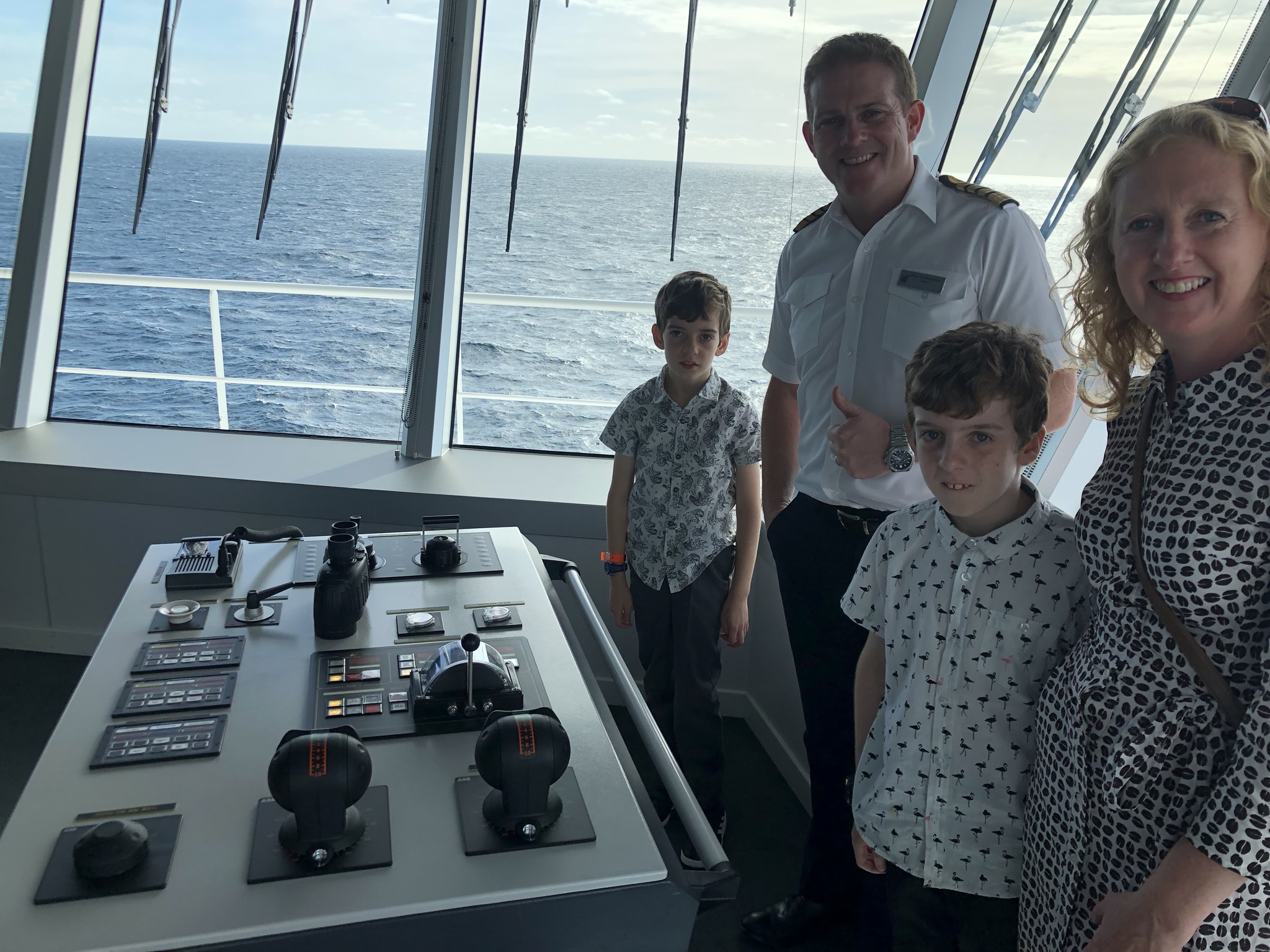 The first day on-board was a sea day which gave us time to visit the ship and the kids club. We read books, played in the sports court, listened to music etc. After dinner the boys went to the club for the evening program while we went to meet the captain at a champagne reception. It was a pleasure to meet Captain Noel O Driscoll from Castletownbere! An amazing achievement for a young Cork man to captain the largest ship in the industry.