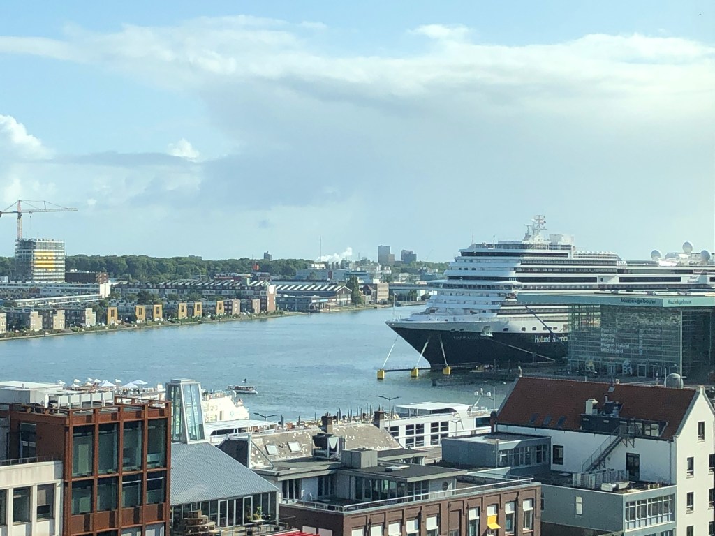 Holland America’s newest and biggest ship the Nieuw Statendam, looked huge as it sat in port alongside the harbour buildings prior to sailing from Amsterdam. Once on-board it was fun to spot all the buildings in town and all the bicycles on the quayside.