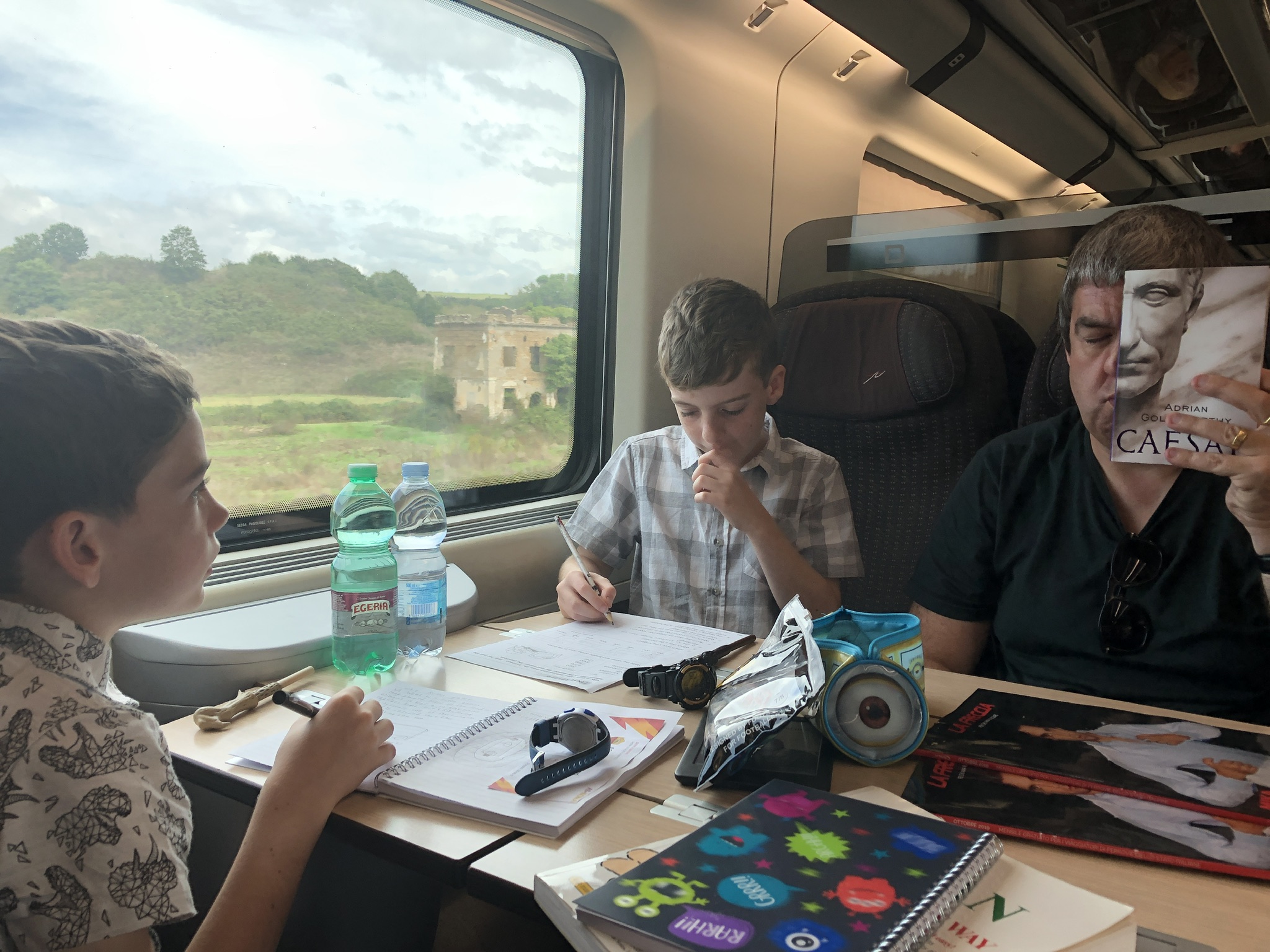 The Ryanair flight from East Midlands to Rome should have been easy but ended up being stressful. There was huge, understaffed queue to drop bags off which delayed us so much that we had to ask at security to move to the priority queue or we might miss the flight. They allowed it 😀. The flight was quite bumpy and the guy beside me stared at me all the way, and it wasn’t Mark 😂 and he kept an eye on my crosswords and sudoku over my shoulder, v strange! Then we were first off the plane in Rome, back seats have their uses, but the security guy directed us to the European passport line, not noticing the kids, and when we got there and realized that it was self scanners, that kids can’t use, we had to back track and were now at the back of the ‘other passports’ queue. We were the last ones to collect our bags and get out of the airport 😳. But then a driver was waiting to take us to our apt near Vatican City. And 30 minutes later we were in the lovely Vino I Oli apt, home for the next four nights.