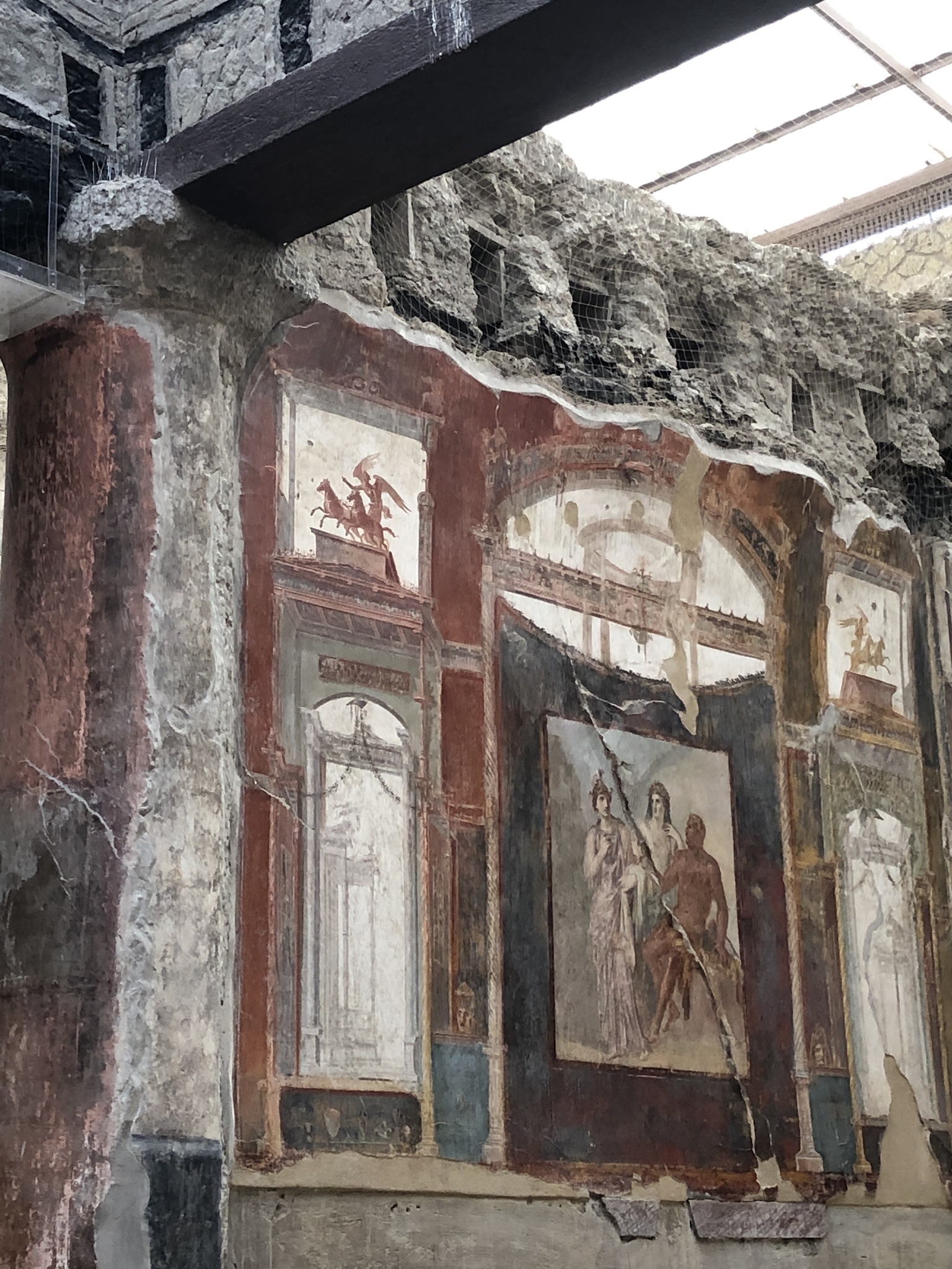 Next day it was time to say ‘Arrivederci Roma’. A day of taxis and trains followed as we headed to Sorrento Via Naples with a stop off at the tourist site of Herculaneum. Pompeii and Herculaneum were ancient Roman towns that have became famous for being destroyed and buried during the eruption of Mount Vesuvius in 79 C.E. The excavated cities offer a glimpse of Roman life in the 1st century, with many streets, houses, villas, baths, and temples still standing today.