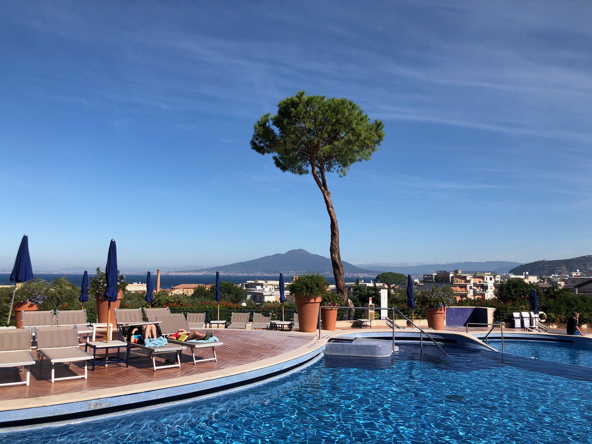 Sorrento looked beautiful in the setting sun as our taxi emerged from the tunnel through the mountain and descended towards the bay of Naples. We checked into the Hilton Sorrento Palace and spent four days there relaxing by the pool and enjoying nice sunsets and gelato.