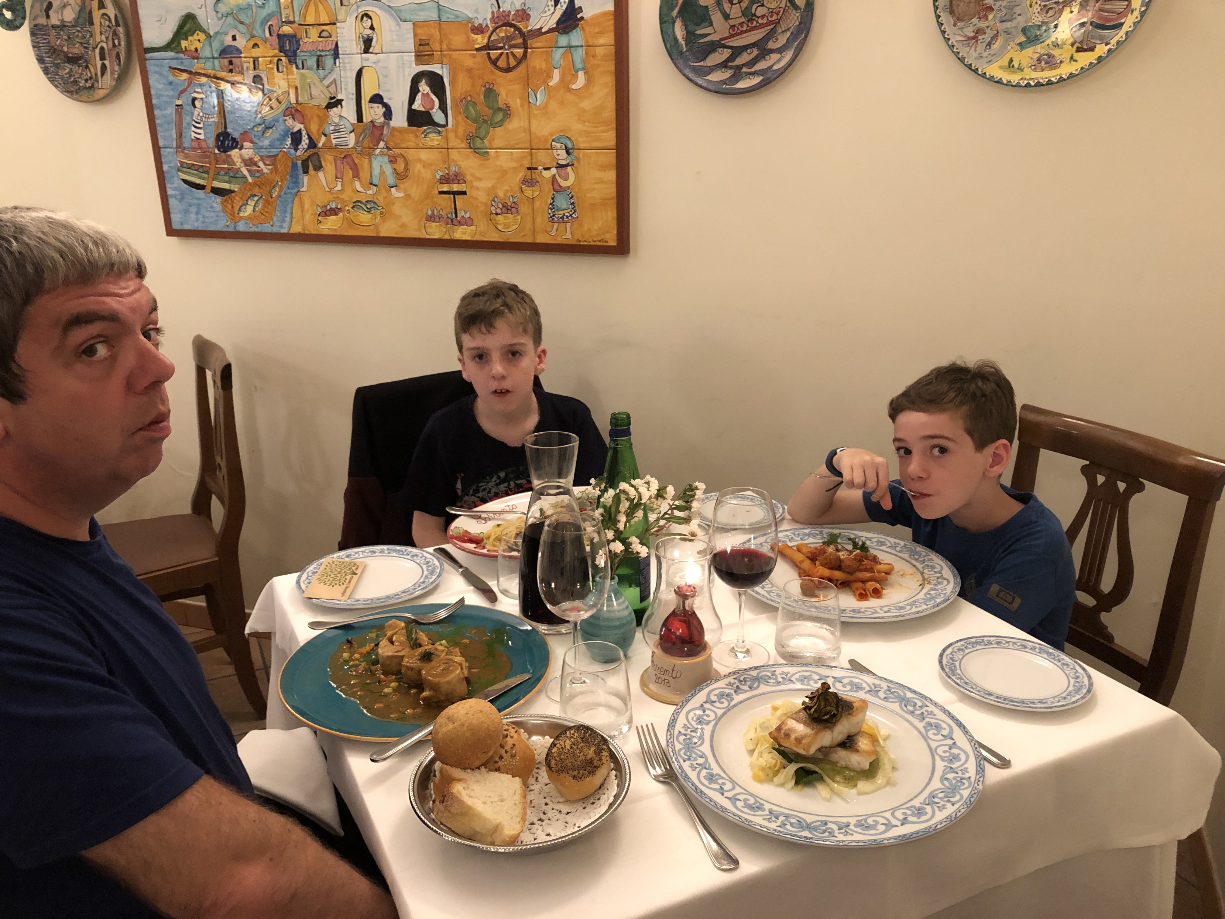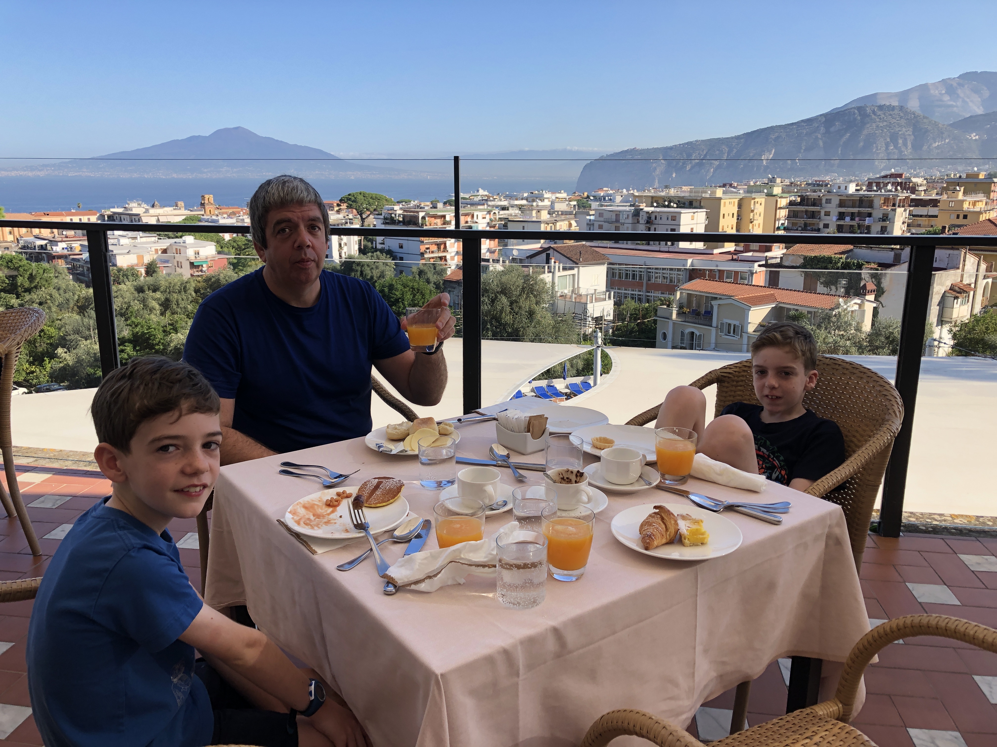 The hotel was on the hill overlooking the bay and Mount Vesuvius. Maybe the best breakfast view yet! The old town was just a few minutes walk downhill. The cobbled streets were bustling in the evenings with restaurants, cafes, shops and gelaterias all open for business. It was nice to sit in the main square for an aperitif before dinner watching the world go by.