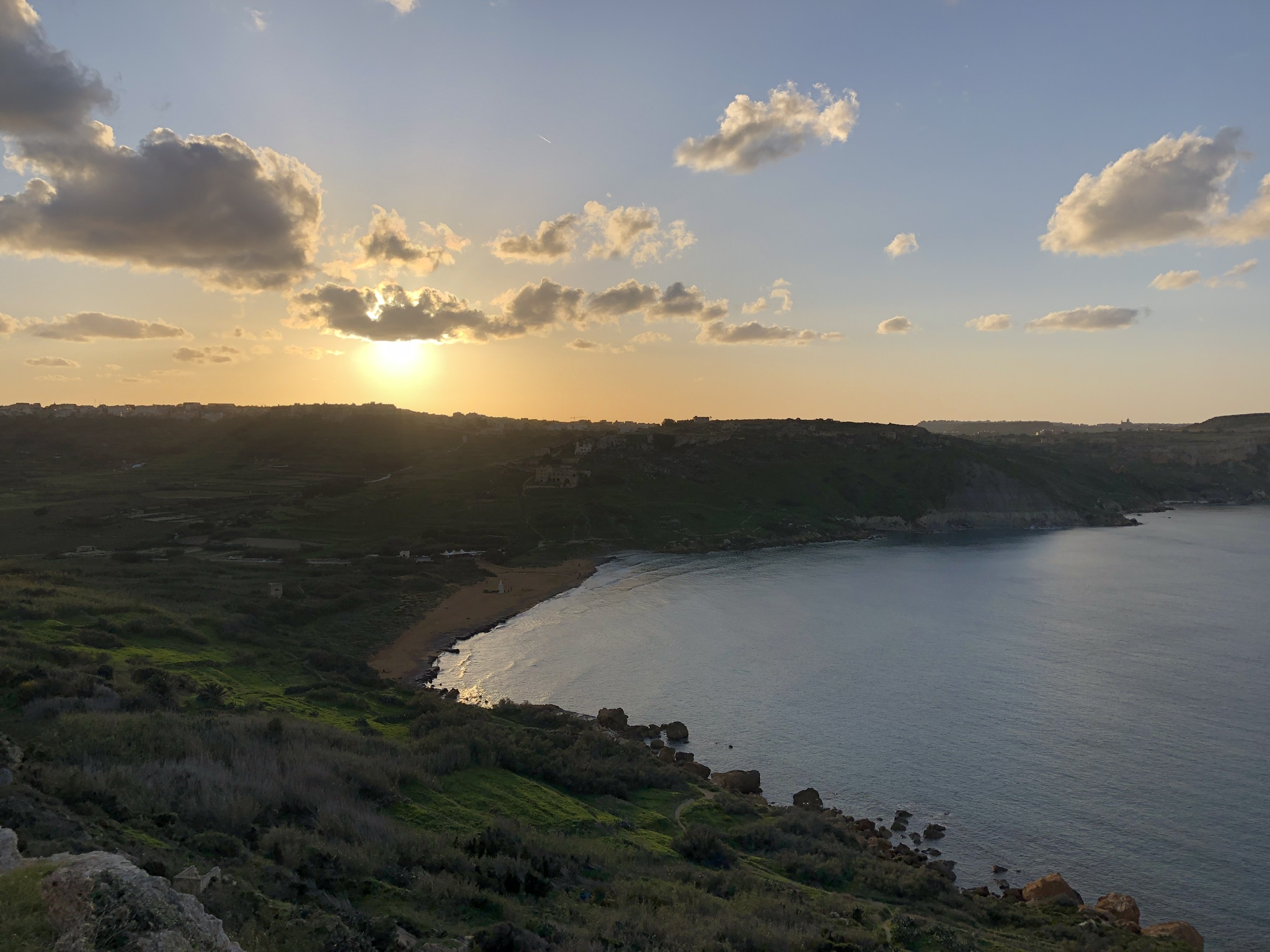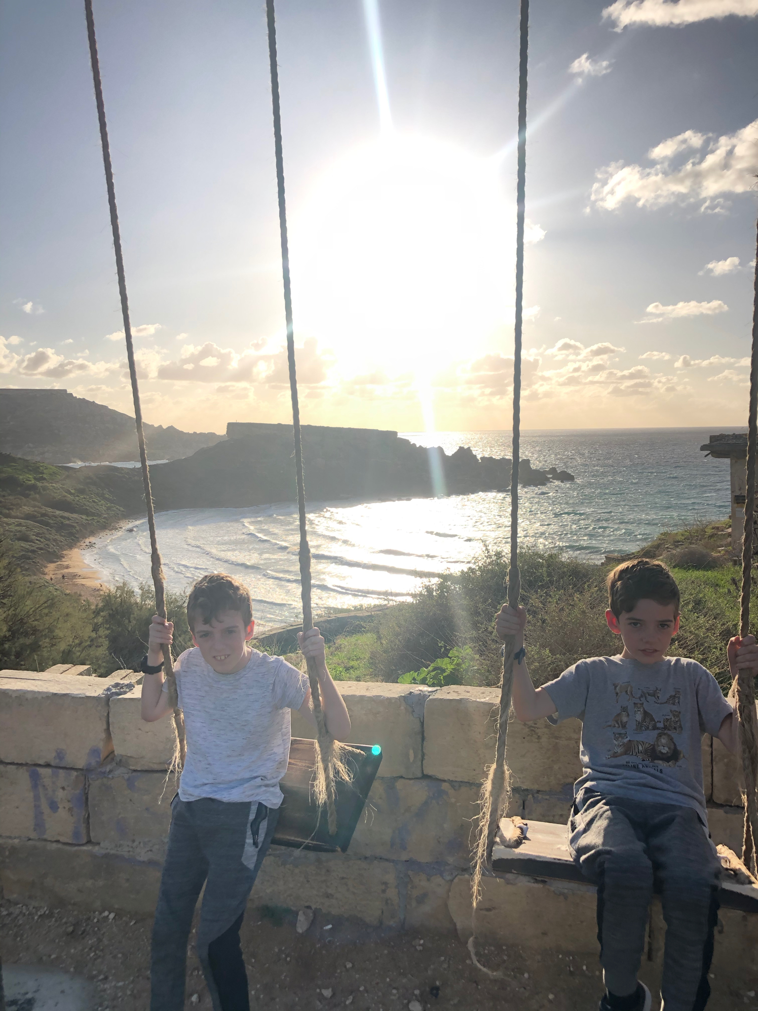 Dwerja was a popular spot for tourists to visit. Scenes from Game of Thrones were filmed there. The focal point of the island, the Azure Window, prominent on postcards and guide books was also a big tourist draw. Unfortunately the window collapsed in a storm in 2017 and the ledge and stack fell into the sea. The area is still nice to visit, a beautiful, rocky terrain fun for climbing and exploring. We visited again with Gwen and Cathryn when they came to visit and enjoyed the sunset.