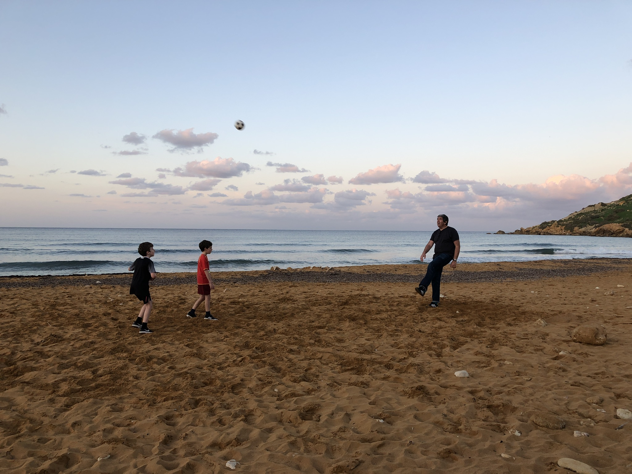 We spent a few days in a nice, big apartment in Marsaskala. There was a great sea view from the balcony and the beach was a few minutes walk away. The town was about a thirty minute walk along a promenade. The town was very pittoresque with lots of colourful fishing boats in the harbour. There was a playground where the boys played football. We ate there twice; once in an Irish bar and a second time in an amazing Thai restaurant where the owner recommended what we should order and then ran into the kitchen to cook! The beach was a nice place to sit and enjoy the sunshine. Mamó and the boys even tested out the cold water for a swim. We got to know some of the locals there over a few days.