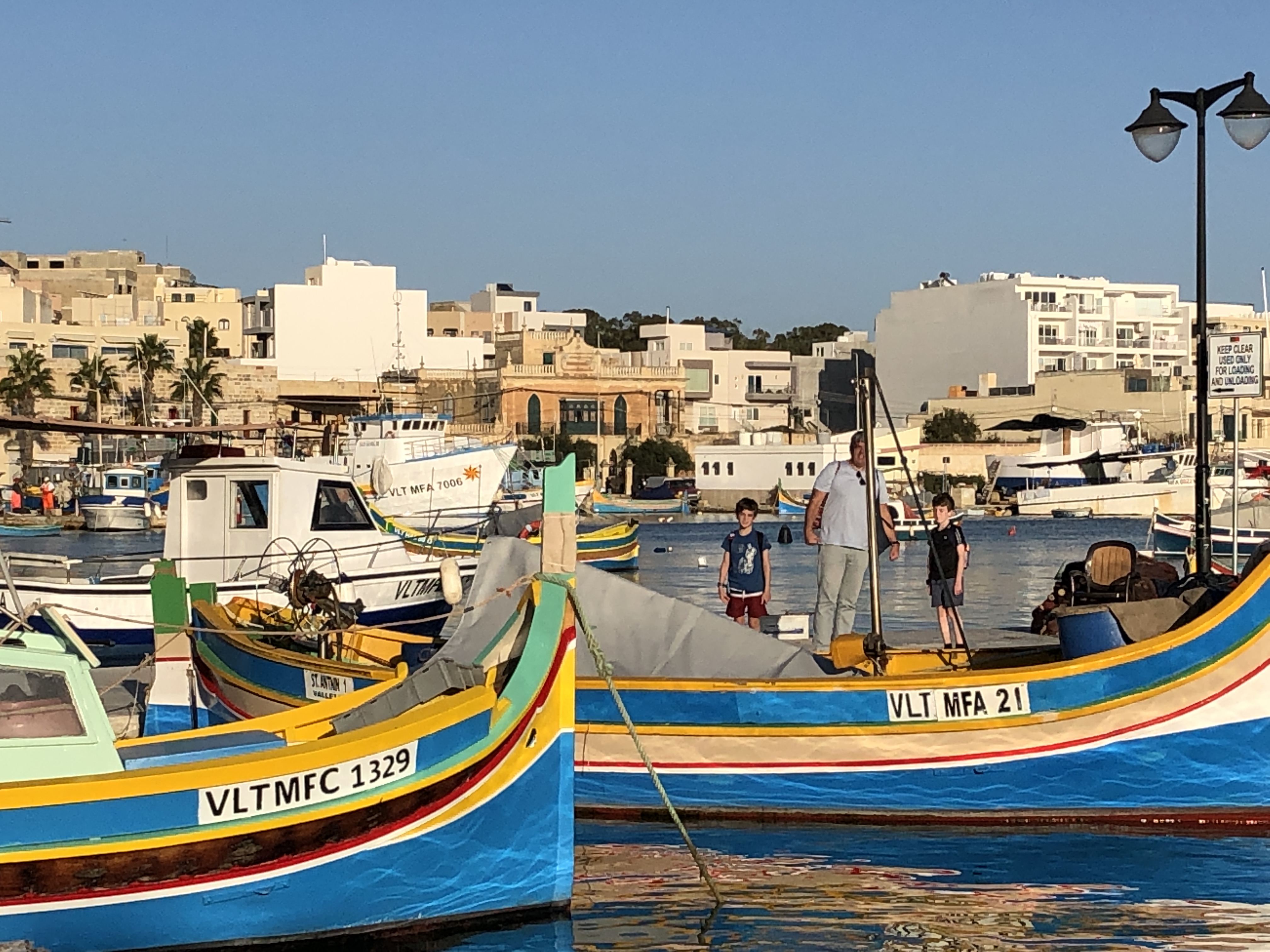 Home of the Luzzus or colourful fishing boats synonymous with the island. Still a working fishing village where boats come and go and fishermen tend to nets along the quays. There’s also a big tourist market there selling local crafts. The waterfront is lined with an array of seafood restaurants. Menus advertising the days specials blow in the breeze. We settled on one and enjoyed some nice fish and a bottle of wine, a relaxing Sunday lunch in the sunshine.