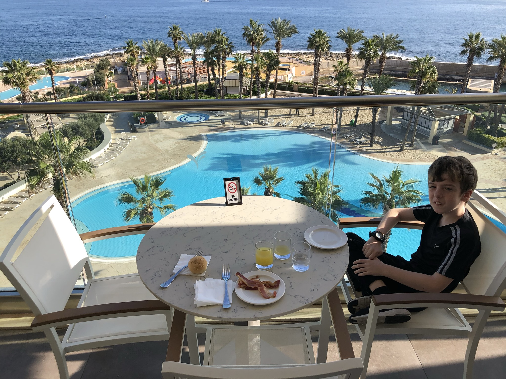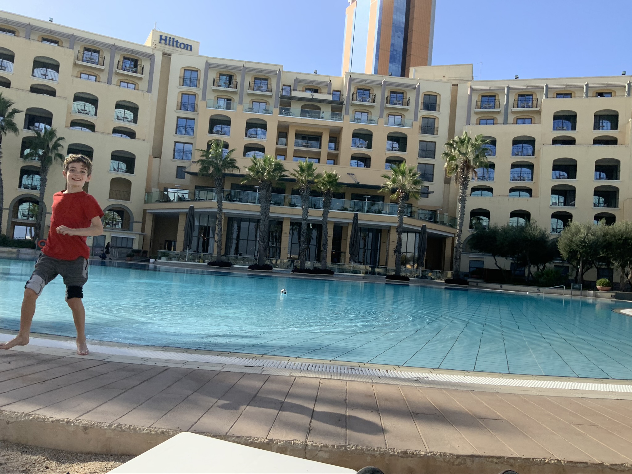 The last few days of our Malta trip and we were in for a treat. We checked into the beautiful Hilton Malta, a huge resort hotel with panoramic views of the Mediterranean. We had two beautiful sea view rooms with big balconies and access to the club lounge where we got breakfast, afternoon tea & evening drinks and snacks. The big outdoor pool was a bit cold for swimming but we used the lovely indoor pool and spa each evening.