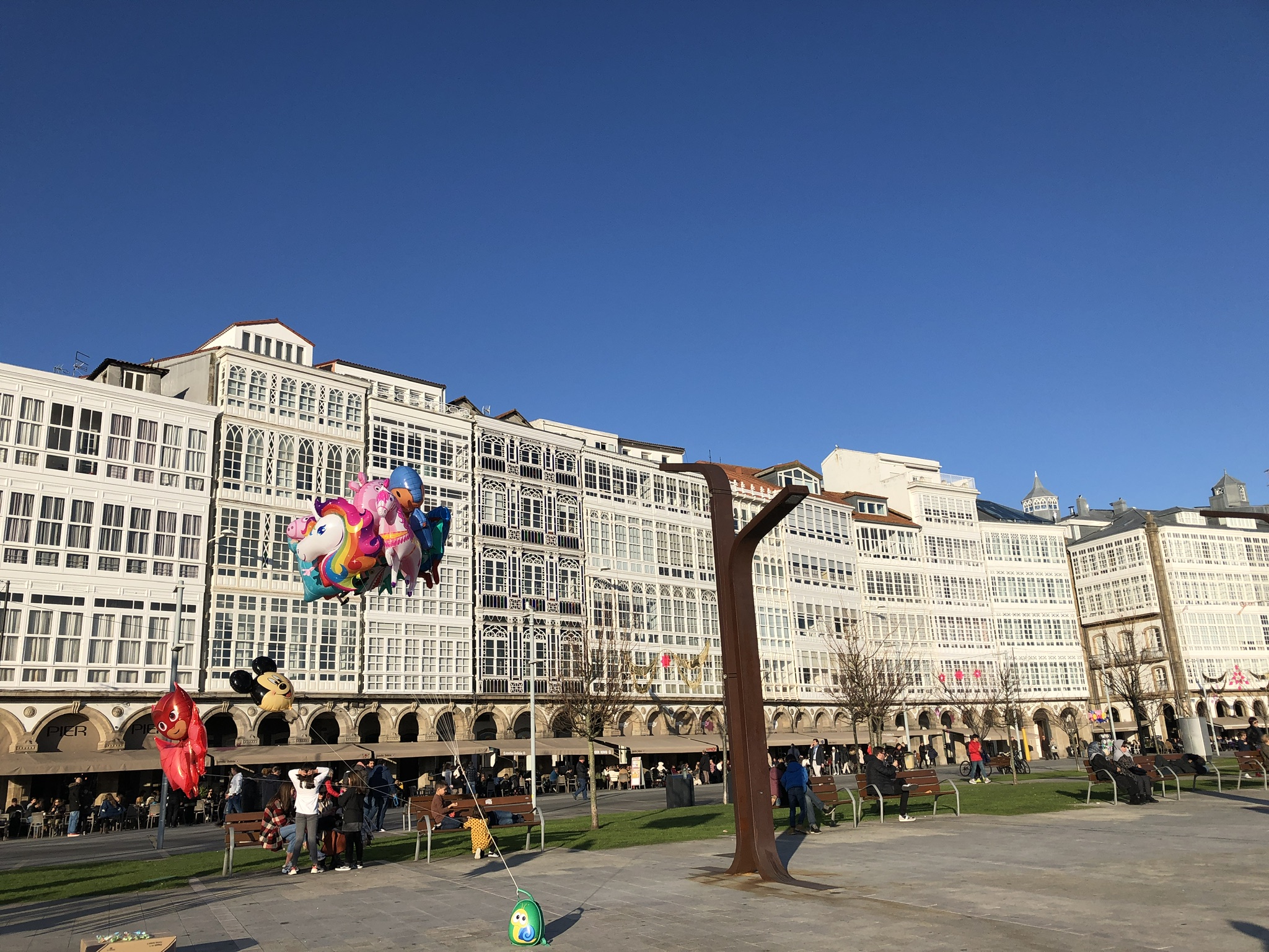 January 6th was a quiet day in A Coruña. Everywhere was closed for the holiday. We walked to Riazor beach and spent time in several of the many playgrounds we passed along the way. There were lots of statues in the parks. Among those we spotted were one promoting reading and one of John Lennon playing his guitar.