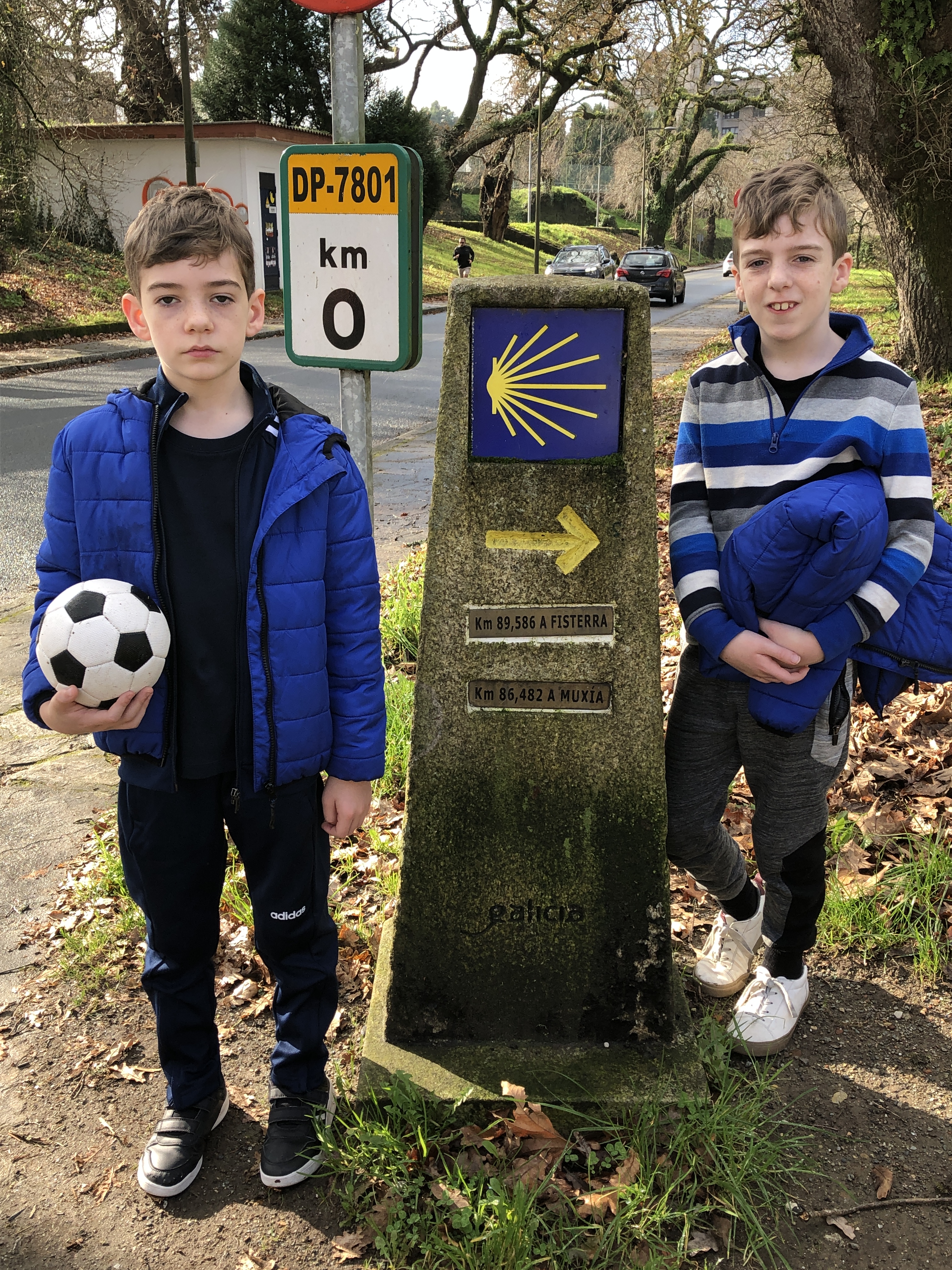 We stayed in the Entrecercas Hotel near the main square. It was an upstairs attic room with slanted ceilings and three comfortable beds. We all slept well, so well that we missed breakfast downstairs! We went to a cafe next door and got plates of toast and jam with coffee and fresh orange juice for €3. Then we decided to walk a bit of the Camino. The tourist office recommended walking a bit of the French way which leads to Finisterre and was accessible from town. It was a beautiful trek. We didn’t go too far as we had little legs to accommodate too. We were quickly out of the town and on a lovely woodland path. When we returned to town we found a local restaurant serving a ‘menu del dia’ for €11. The food was great and with wine and coffee included it was a true bargain.