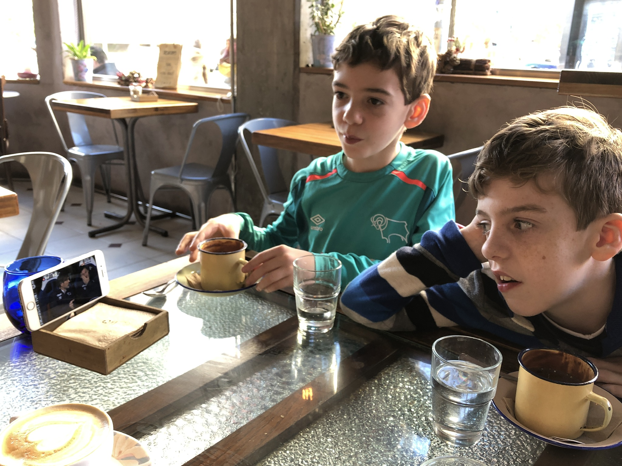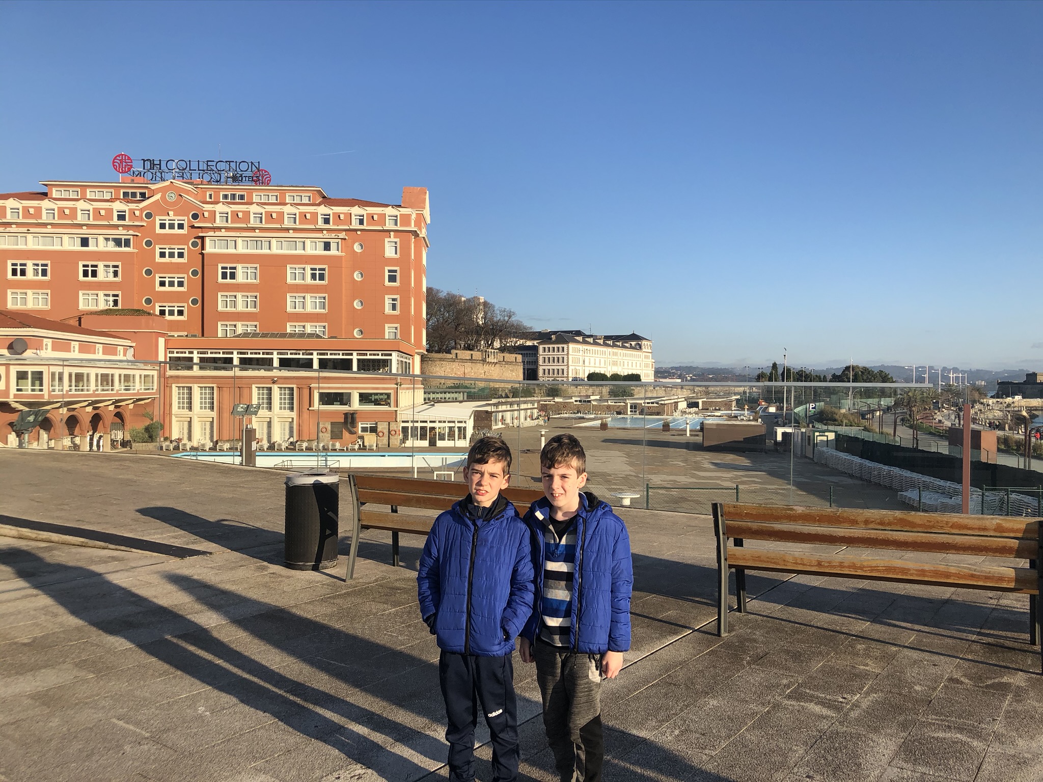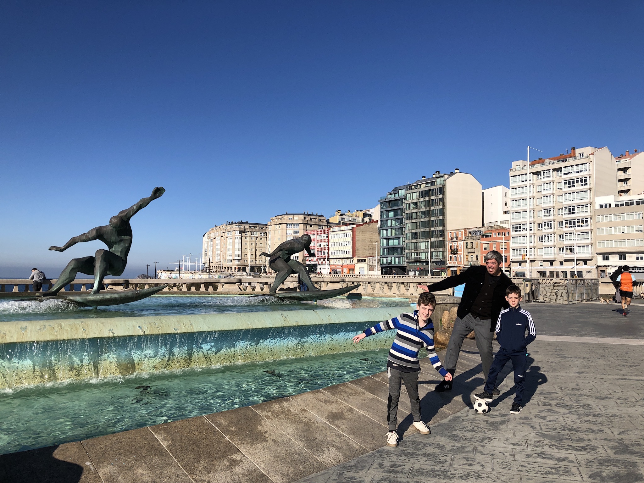 The next day started spotting dolphins while we enjoyed the fine breakfast buffet. Then we set off for a walk to a Hercules Tower, the Roman lighthouse and emblem of the city . We stopped for a browse in the Museo del Arte as we were passing. Entry was free and it housed a few interesting pieces. There were lots of people walking along the wide promenade and Shea kicked his ball the whole way. As we were returning from the Tower we decided to check out the children’s museum of the body, Domus. Again entry was free and despite the fact that everything was in Spanish, it was an interactive museum and worth a visit. We stopped for a coffee and a hot chocolate in Miss Maruja Café and the boys connected to a live Derby match.
