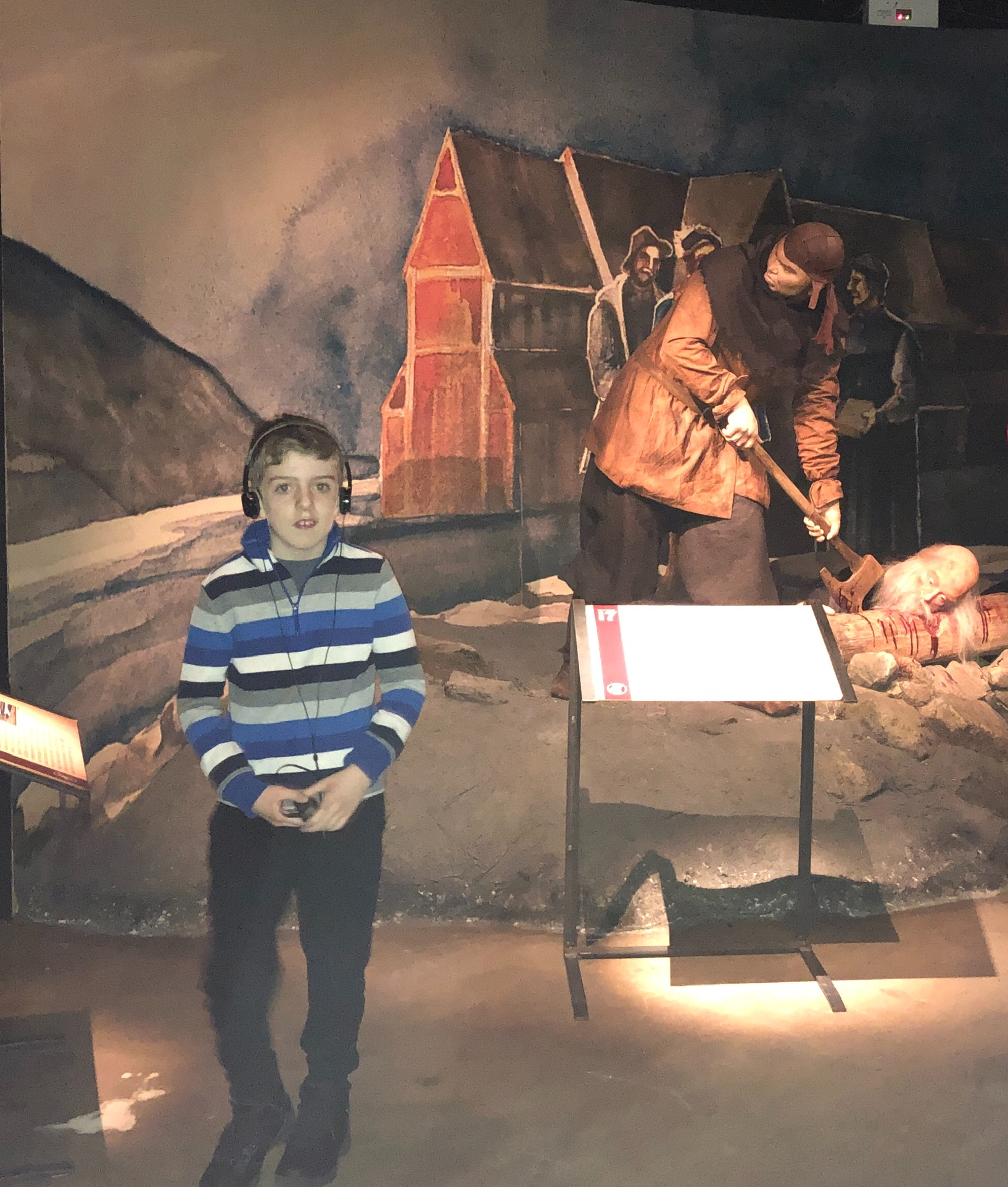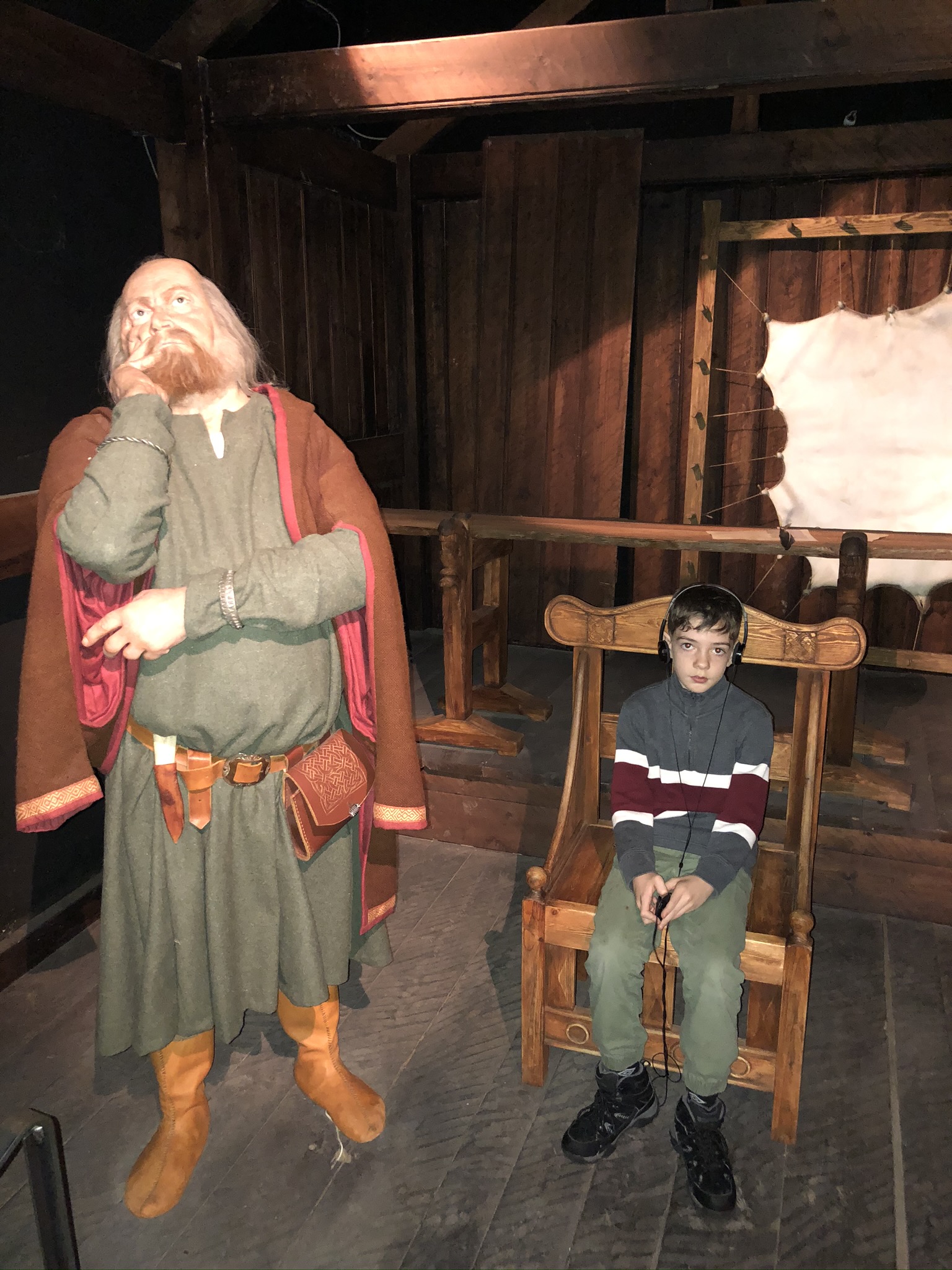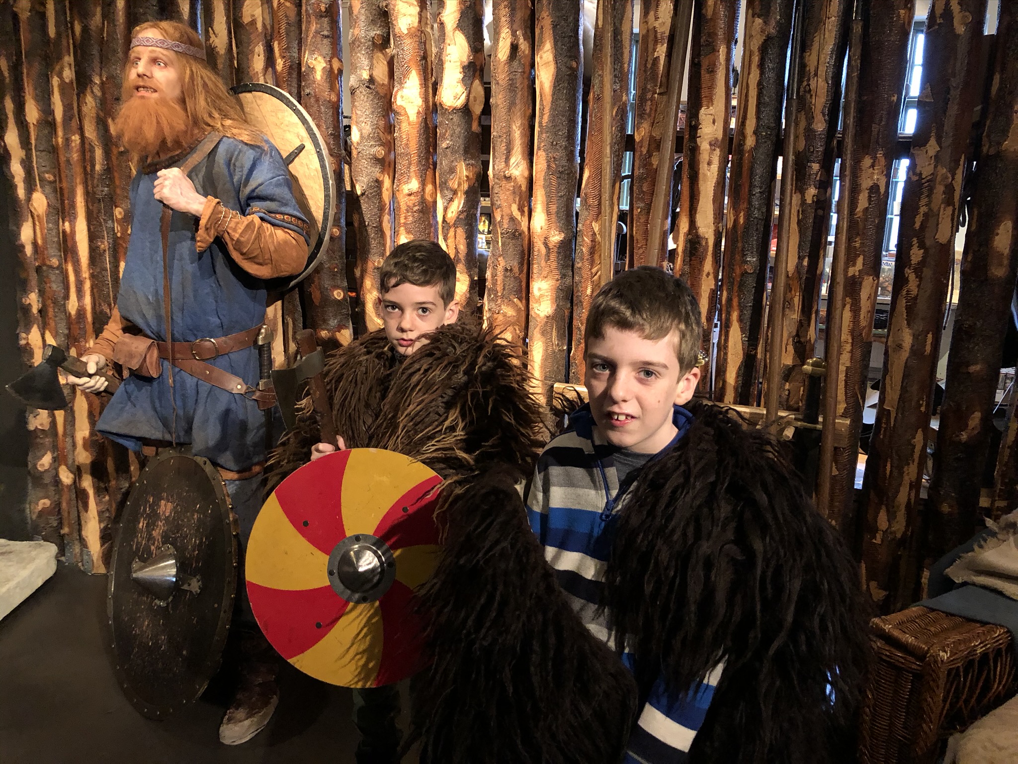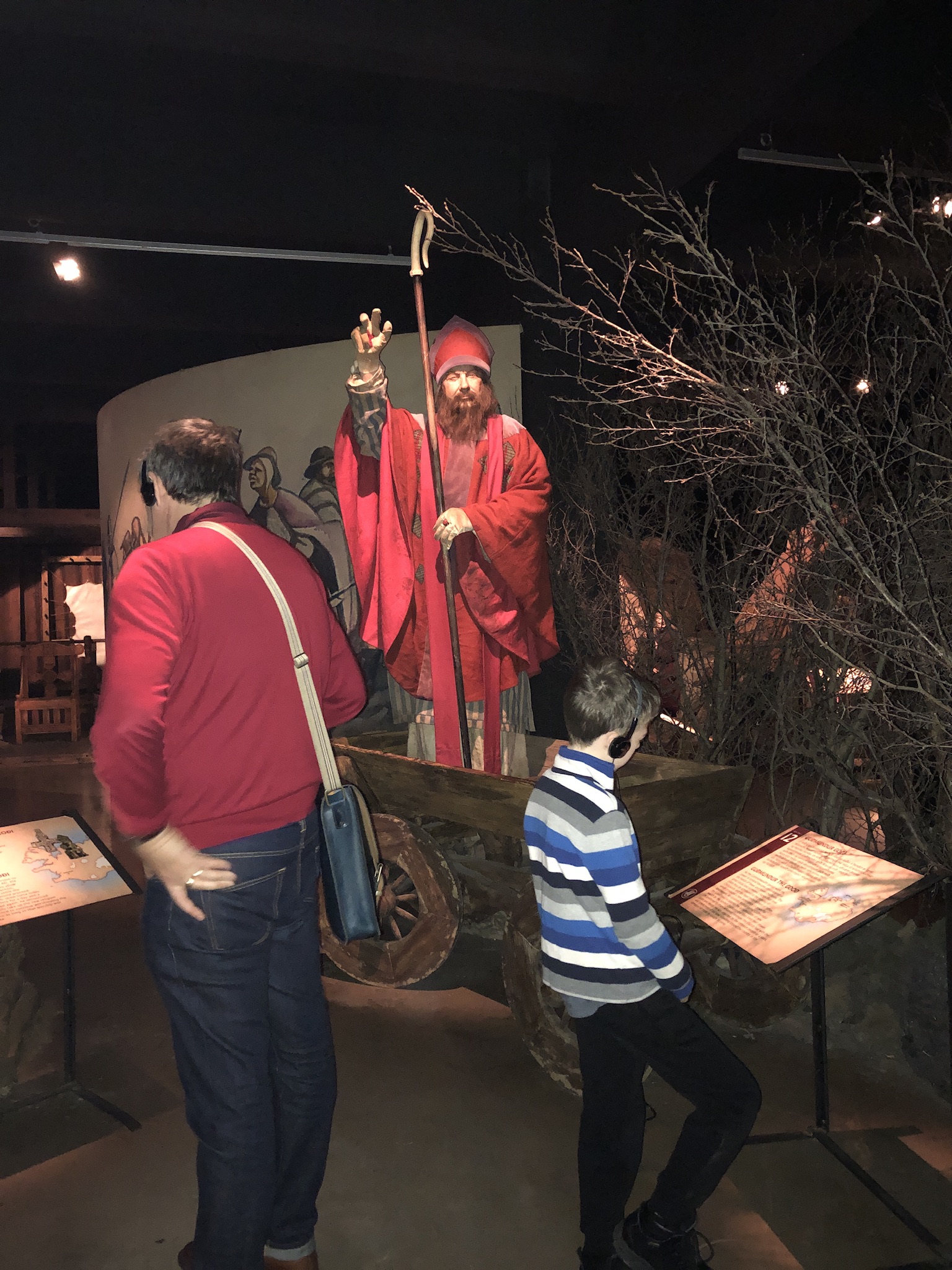 Our last day in Iceland was a blustery, wet day as Storm Denis made an appearance. It was the same storm about to hit Ireland but here they don’t actually name their storms! The hotel was busy with extra guests stranded due to cancelled flights. We got a late check out so we could shelter from the storm for a while and then we headed out when the rain eased. First stop was the Saga Museum, a few hundred yards up from the harbour. We were nearly blow away walking there. At Saga, the Viking history museum, we got an audio guide which we listened to as we walked through historical scenes with very realistic looking mannequins. There was an informative video showing how the sets and mannequins were created and there was a dress up area with Viking gear and weapons.