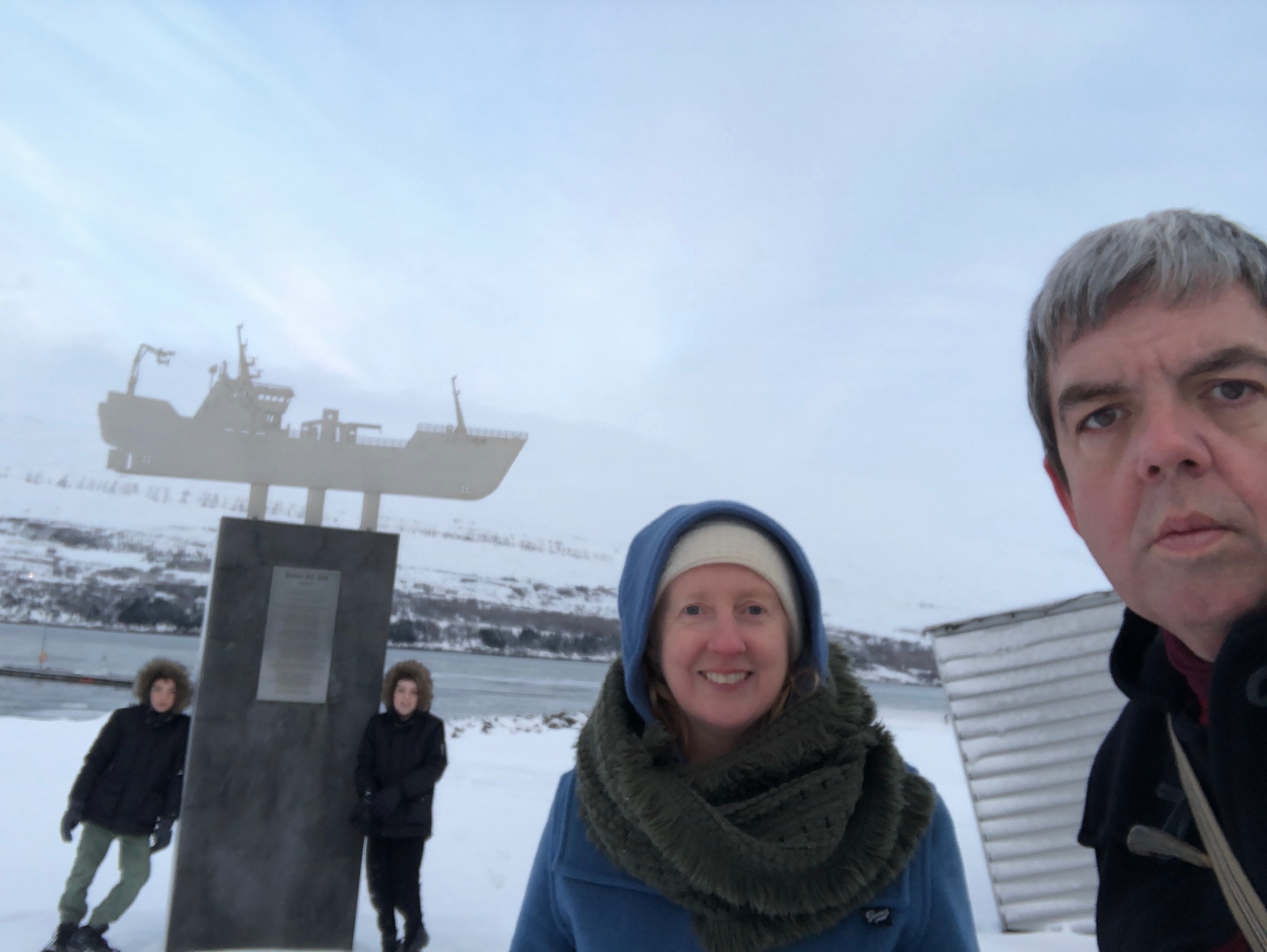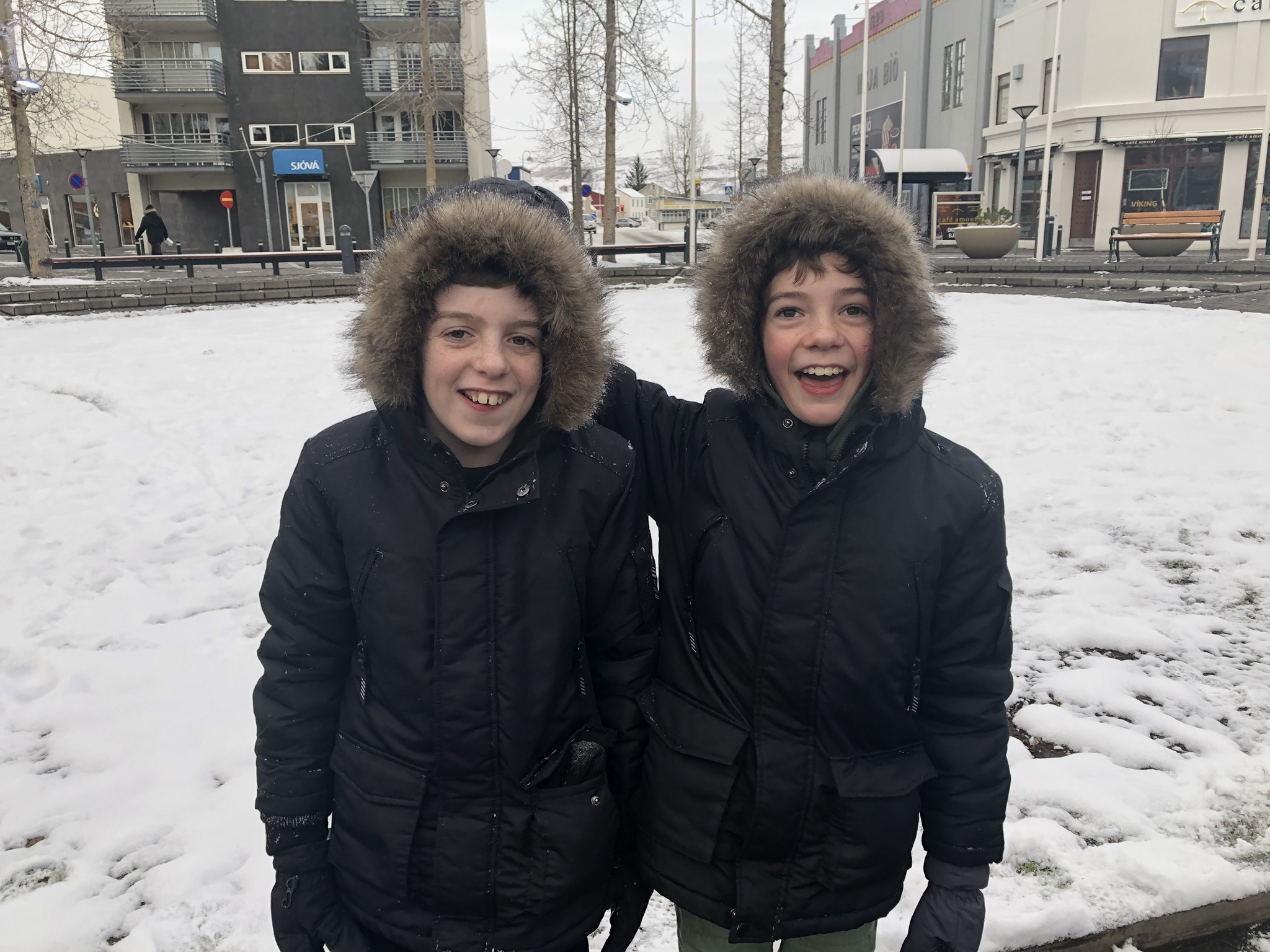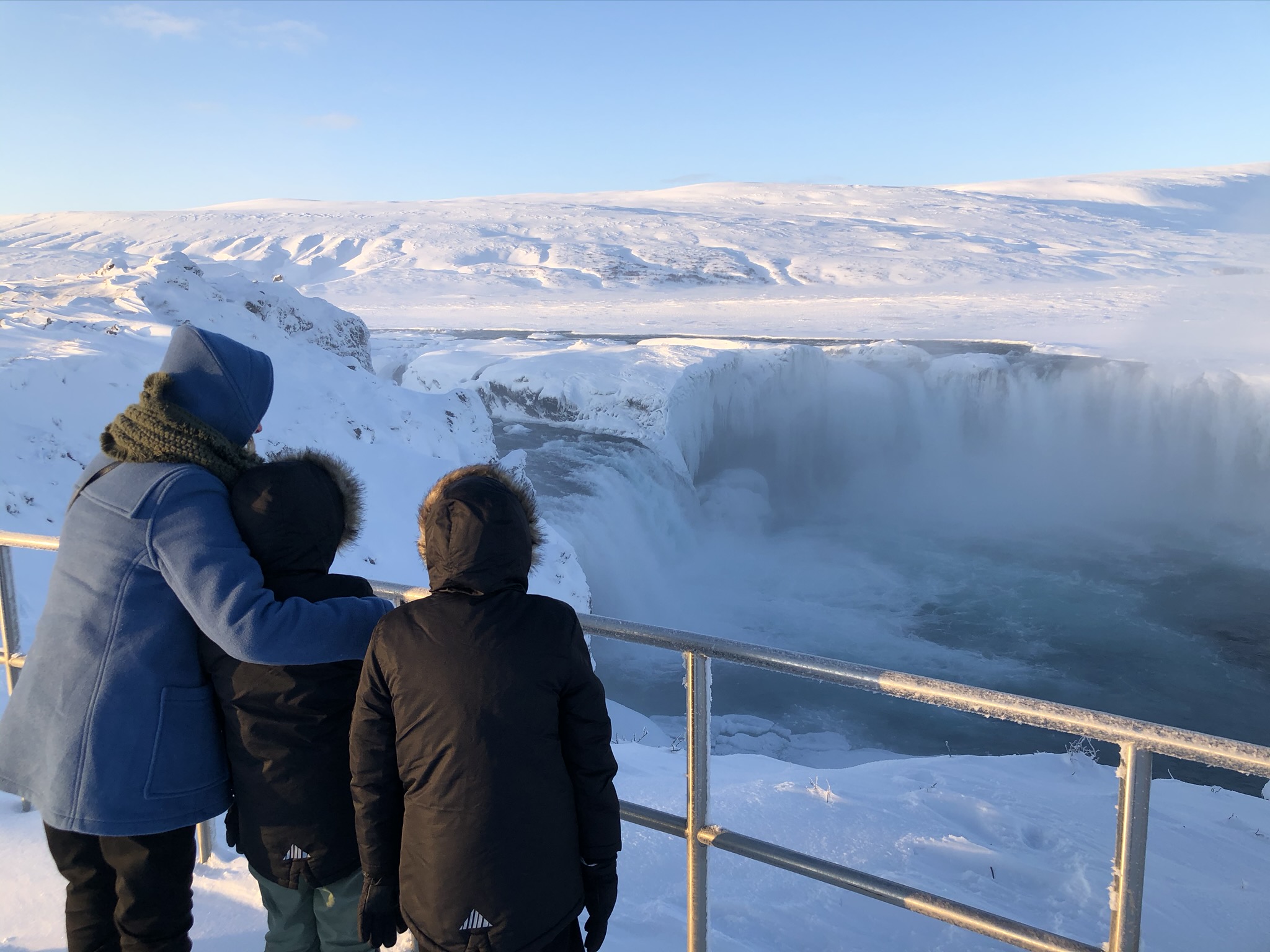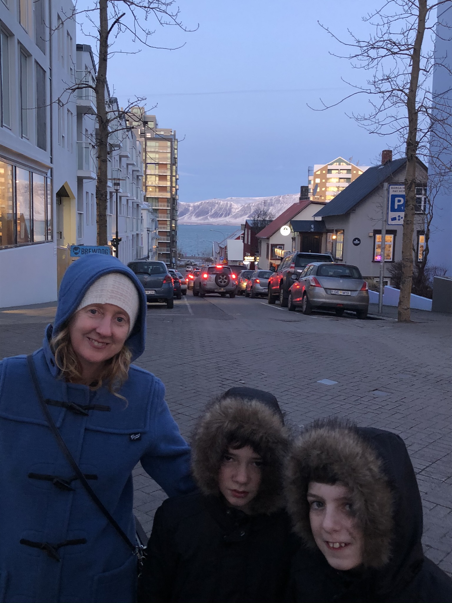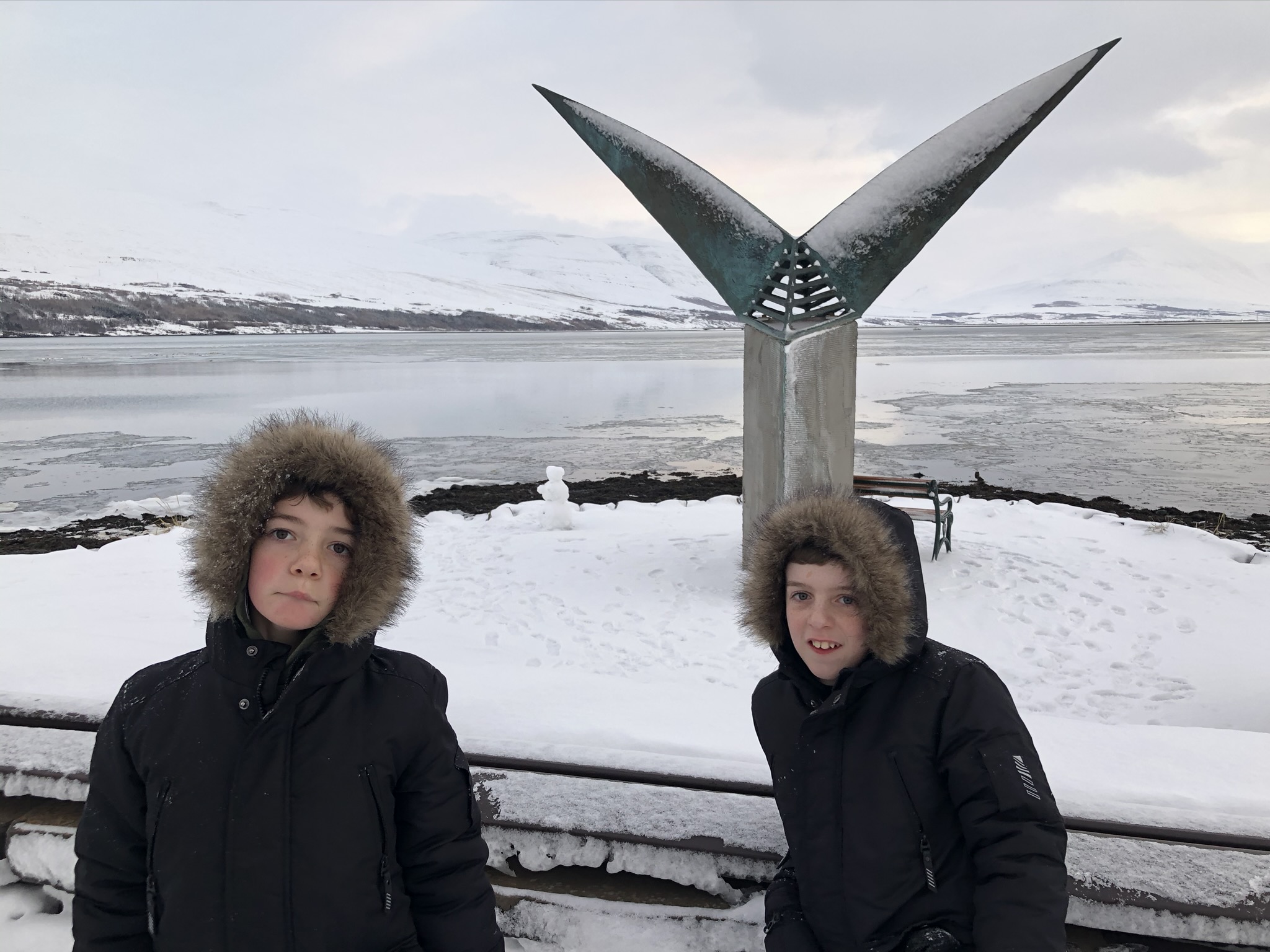 The town was small and had a very different vibe to Reykjavík. We stayed in a nice apartment just off the Main Street. A walk around town don’t take long but it was pretty. The town is flanked by a tall mountain to one side, home to a popular ski resort, and a large fjord to the other side. The boys had a great snowball fight and we all enjoyed walking the snowy paths along the frozen fjord. We stopped for dinner in the Thai restaurant which was excellent. The traffic lights had a red love heart in the place of the regular red stop light. Another nice touch.