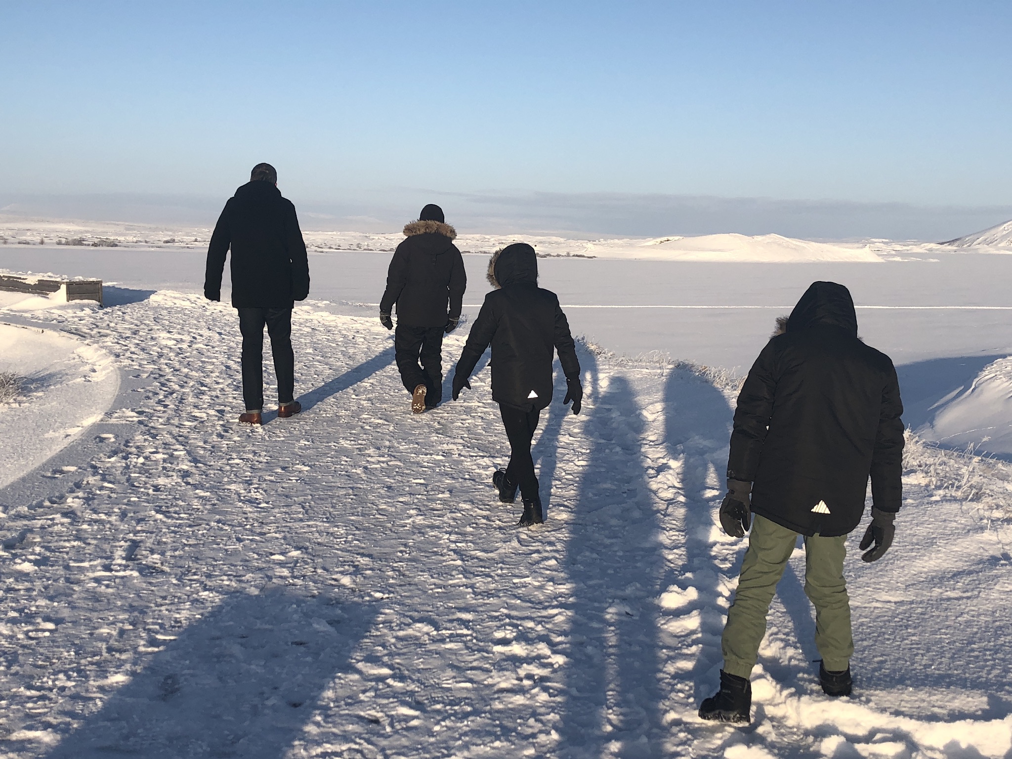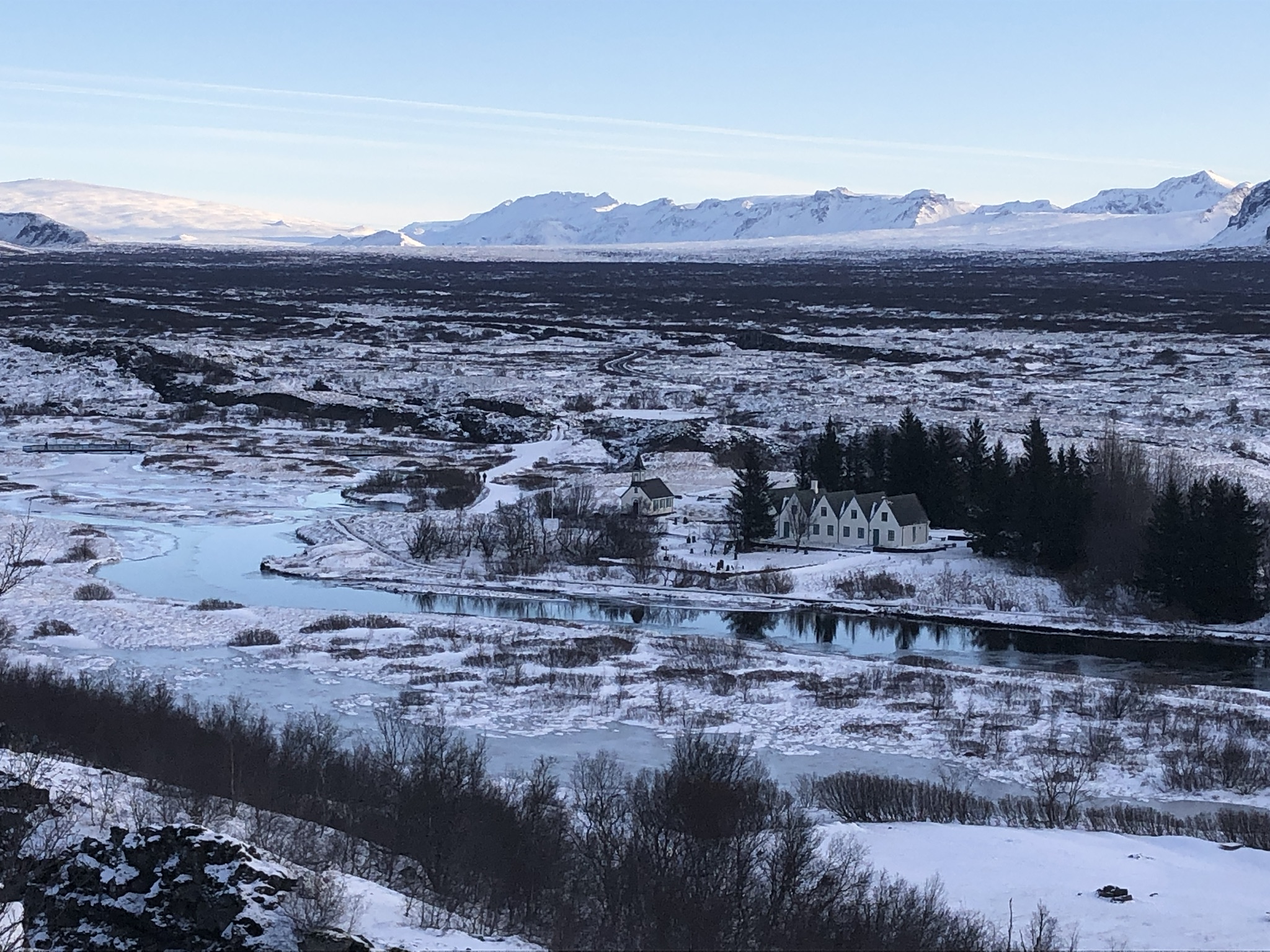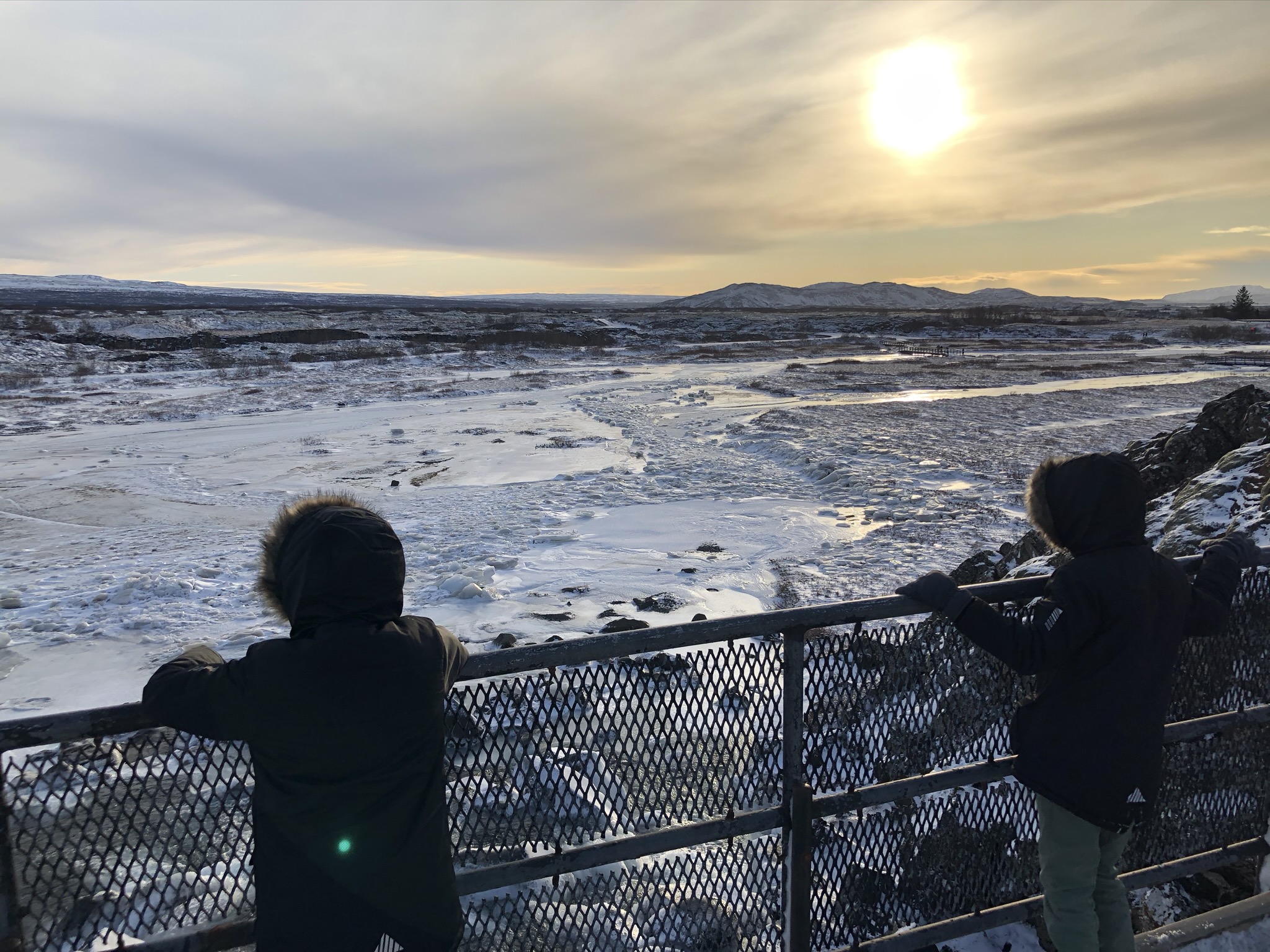 After breakfast we wrapped up in warm clothes and set off with Samuel, our tour guide for the morning. He drove us to Thingvellir National Park. This is where the tectonic plates of Europe and the US meet. We saw some amazing scenery and learnt lots about the country. We paid a quick visit to the visitor centre and then walked along the snowy path to meet the driver in the neighbouring car park. The sun shone and the views were beautiful.