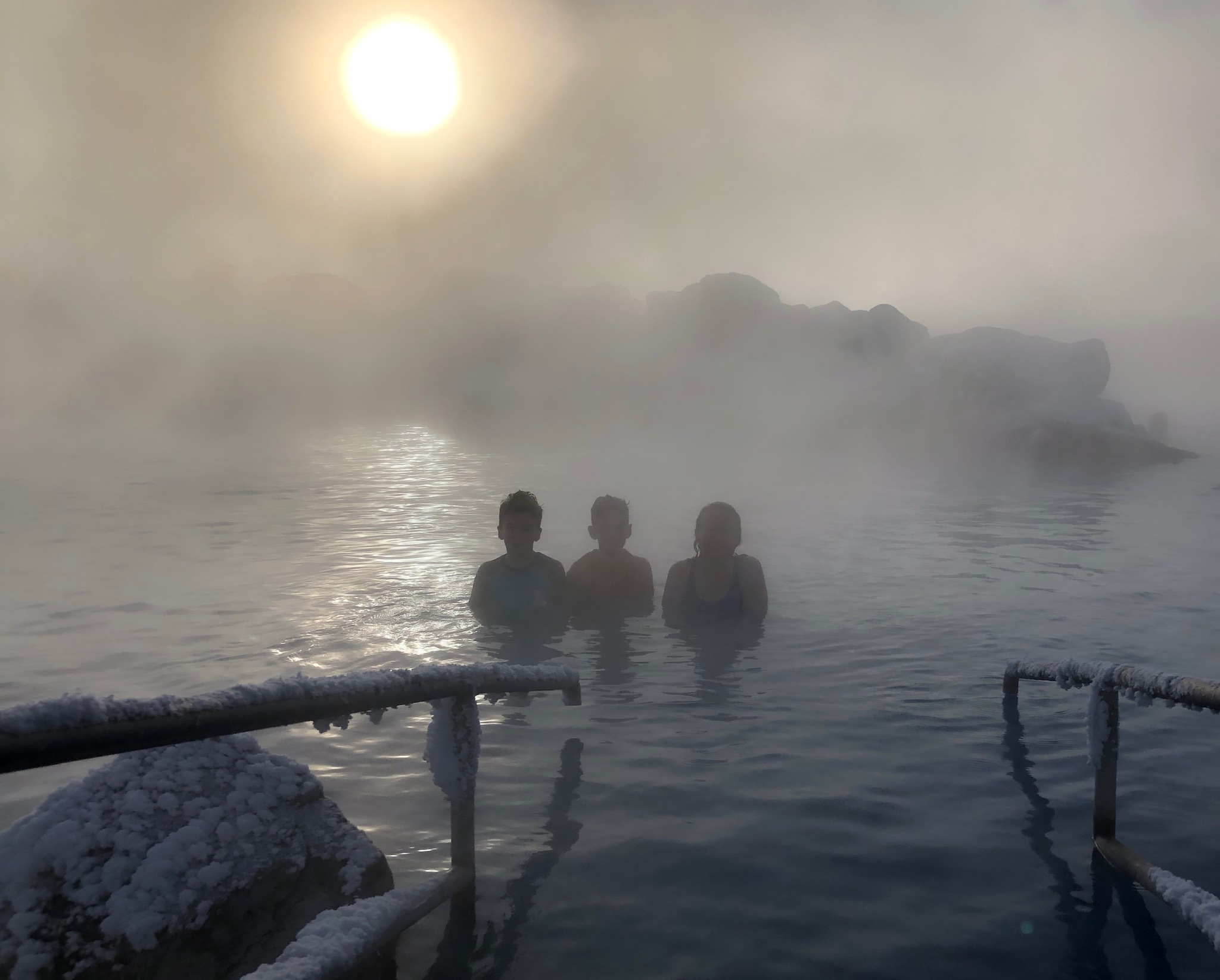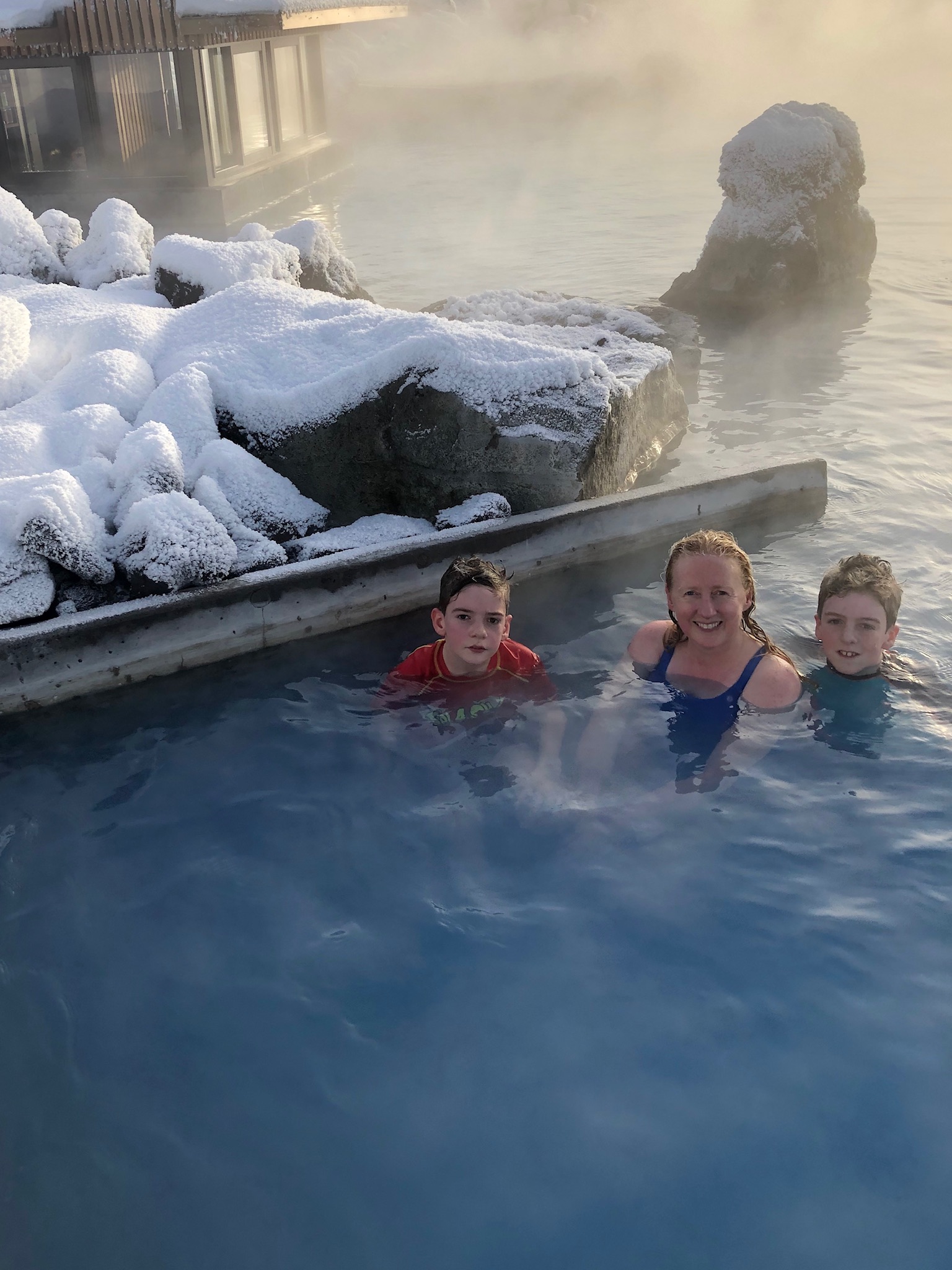 The Kvosin Hotel was a lovely base for the night. We got robes and slippers, always a bonus and we had a great breakfast there next morning with waffles for Eoin and eggs for Shea. Result! We set off for a walk around town and found our way to the oldest swimming pool in Reykjavík, Sundhollin, which was originally opened in 1937. We had tried to visit last time we were in town but it was closed for renovations. The building was designed by noted architect Guojon Samuelson, who also designed buildings such as The Church of Akureyri and the famous Hallgrimskirkja church. We enjoyed relaxing in the hot tubs with the cold air on our faces. We shared a pizza for dinner and relaxed in the hotel wishing for the northern lights to make an appearance.