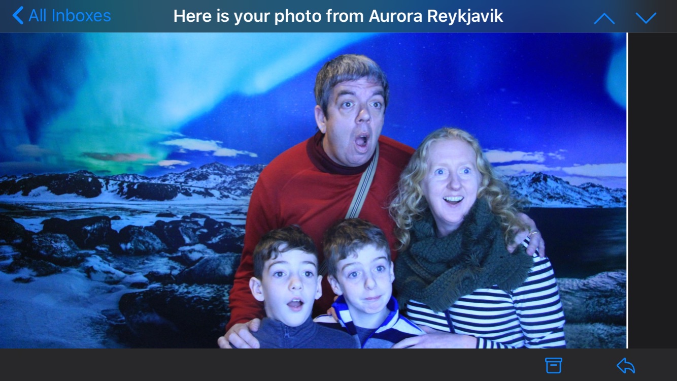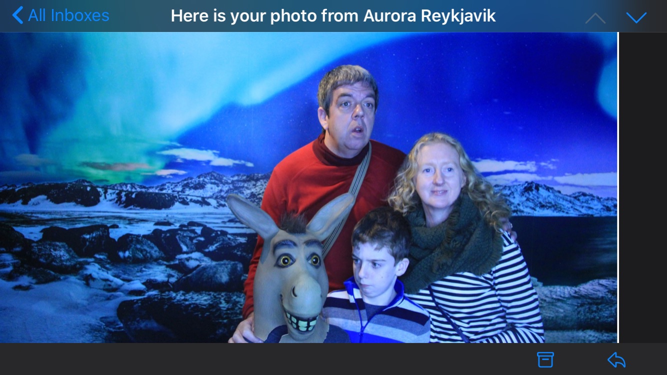 Next door was Aurora Reykjavik, a museum created by hunters of Aurora Borealis to share a passion and knowledge about the most unique natural phenomenon in the world. We figured it was the closest we’d get to the Northern Lights on this visit so in we went. We read about some myths and legends connected with the lights around the world. We saw photos of the lights as seen in places all over Iceland and we got to appear in our own Northern Lights photo!