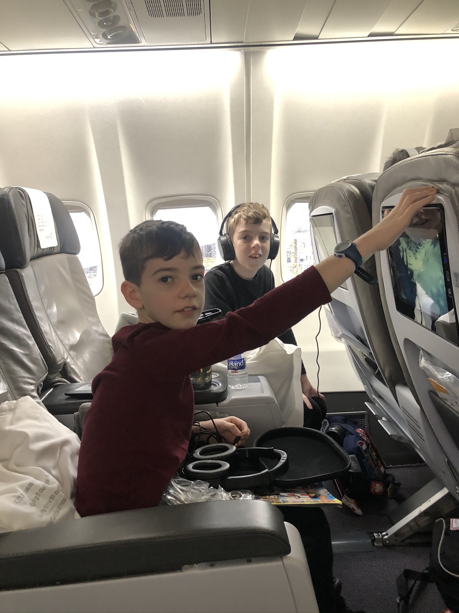 Business class seats on our Iceland air flight were great. We had pre ordered a meal so got some hot food including drinkies for the adults and activity sets for the kids. The scenery en route was spectacular. We saw the glacier and the volcano that had erupted in 2010 causing major trouble with travel and we saw lots of snow.